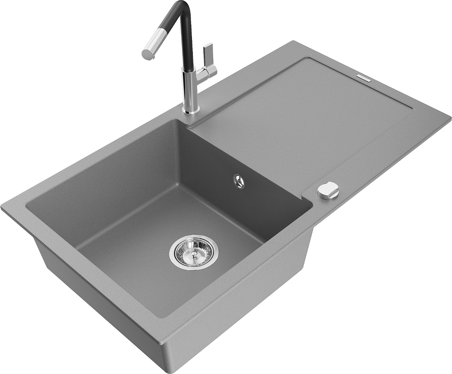 Mexen Leo lavello in granito a 1 vasca con sgocciolatoio e rubinetto da cucina Flora, grigio - 6501-71-670401-07