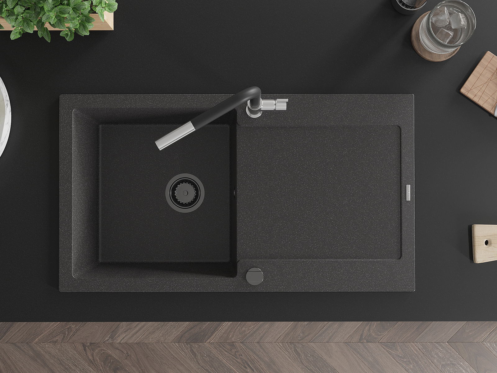 Il lavello è realizzato in granito di alta qualità. Rappresenta un complemento elegante e, soprattutto, pratico per ogni cucina, indipendentemente dal suo stile. L'alta qualità e la durata del granito garantiscono un utilizzo che dura per molti anni.