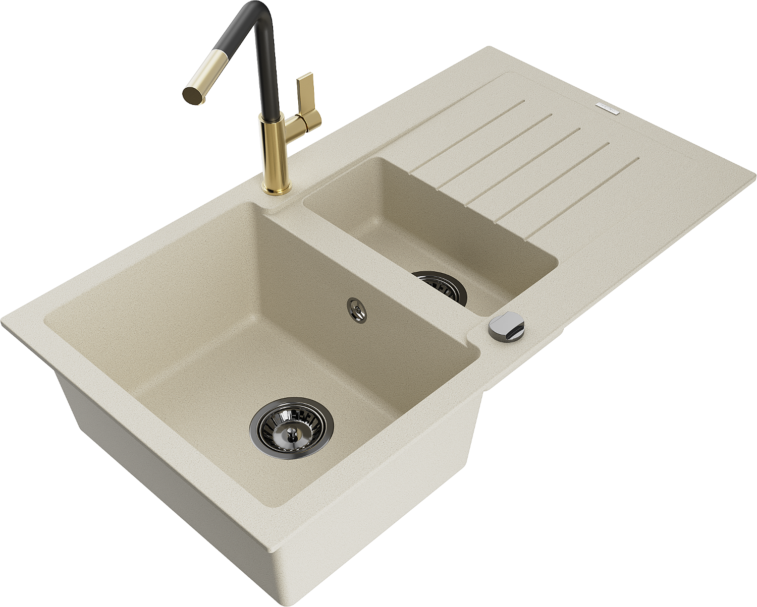 Mexen Matias lavello in granito 1,5 vasca con scolapiatti e rubinetto da cucina Flora, beige - 6502-69-670401-57-B