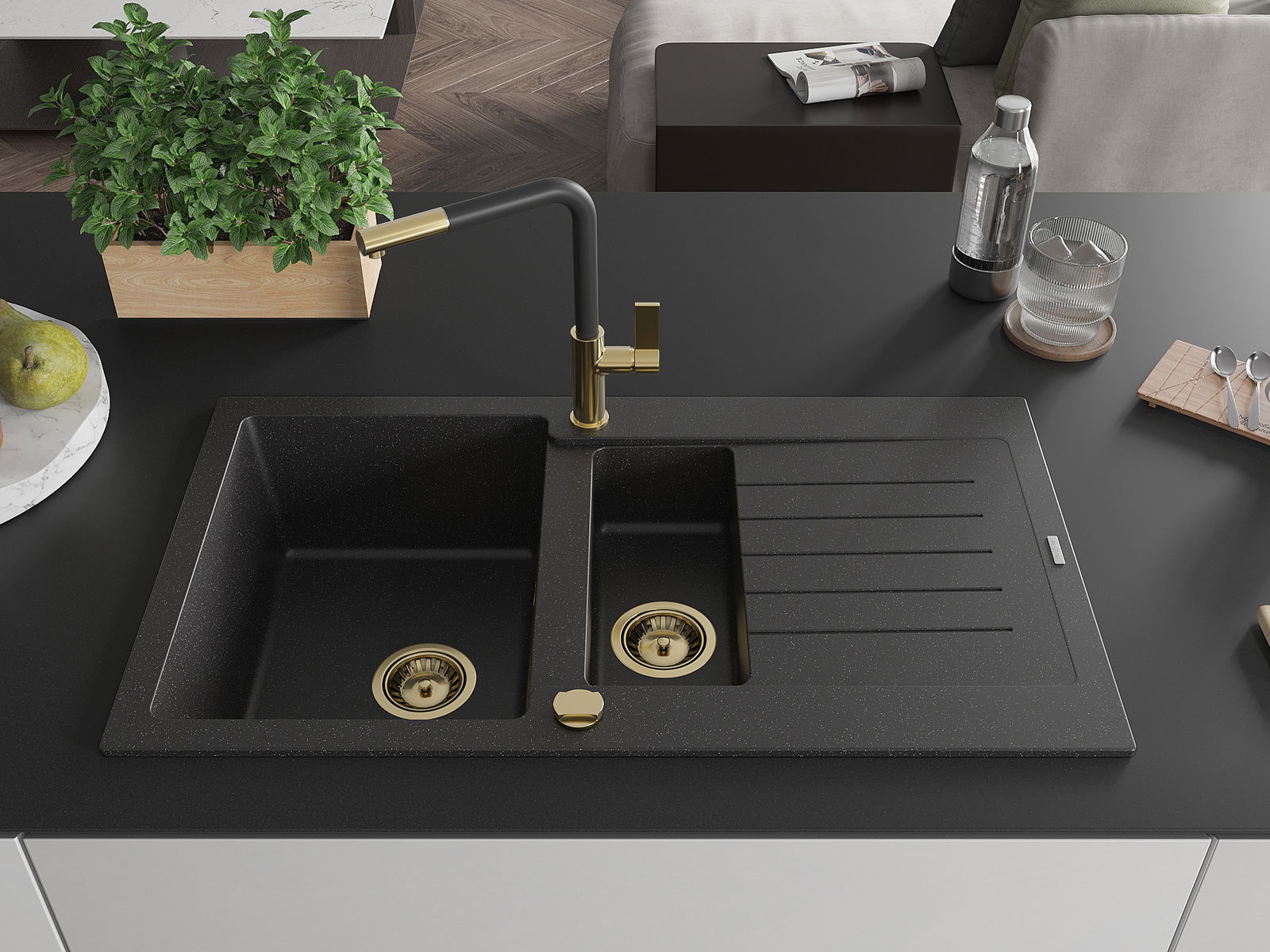 La scelta di un lavello con sgocciolatoio è una soluzione pratica che consente di riporre piatti, verdure e frutta lavati. Lo sgocciolatoio facilita la cucina quotidiana e aiuta a mantenere l'ordine in cucina.