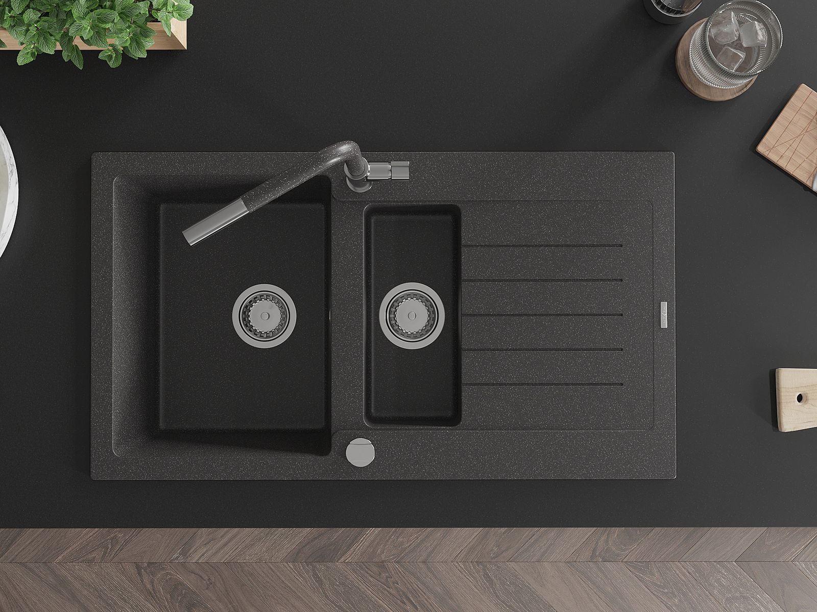 La scelta di un lavello con sgocciolatoio è una soluzione pratica che consente di riporre piatti, verdure e frutta lavati. Lo sgocciolatoio facilita la cucina quotidiana e aiuta a mantenere l'ordine in cucina.