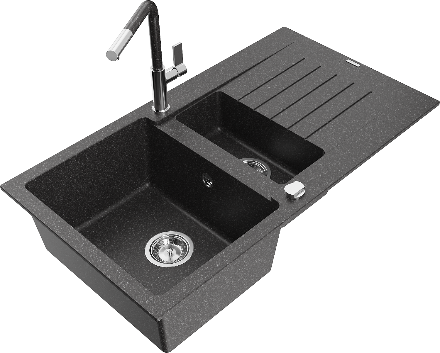 Mexen Matias lavello in granito 1,5 vasca con gocciolatoio e miscelatore da cucina Flora, nero maculato - 6502-76-670401-08