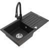 Mexen Pablo lavello in granito 1-vasca con gocciolatoio e rubinetto da cucina Elia, nero maculato - 6510-76-670101-70