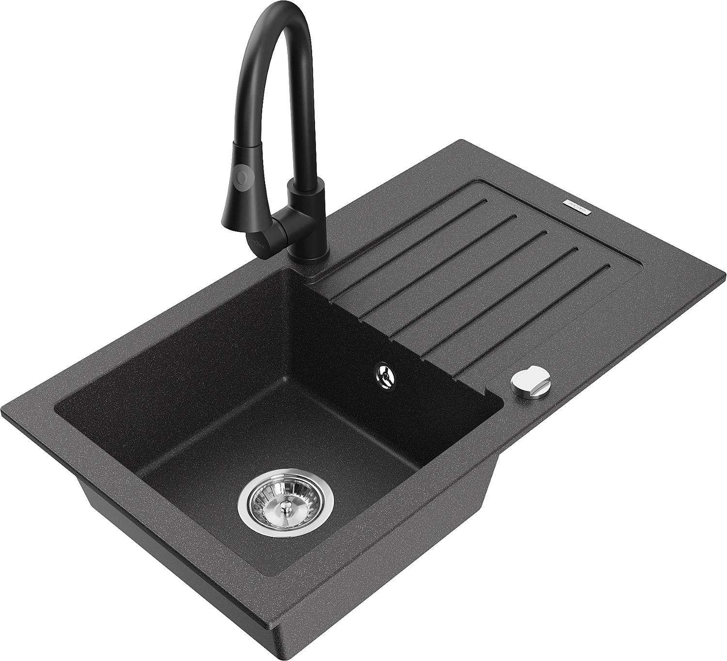 Il lavello è realizzato in granito di alta qualità. Rappresenta un complemento elegante e, soprattutto, pratico per ogni cucina, indipendentemente dal suo stile. L'alta qualità e la durata del granito garantiscono un utilizzo che dura per molti anni.