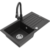 Mexen Pablo lavello in granito a 1 vasca con scolapiatti e rubinetto da cucina Elia, nero - 6510-77-670101-70