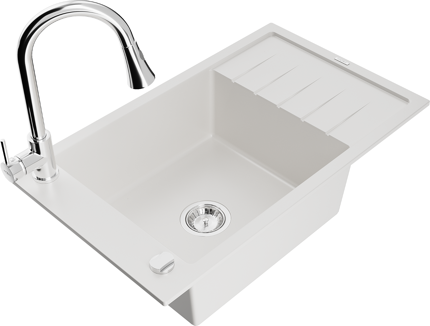 Mexen Elias lavello in granito a 1 vasca con scolapiatti e rubinetto da cucina Elia, bianco - 6511-20-670101-00