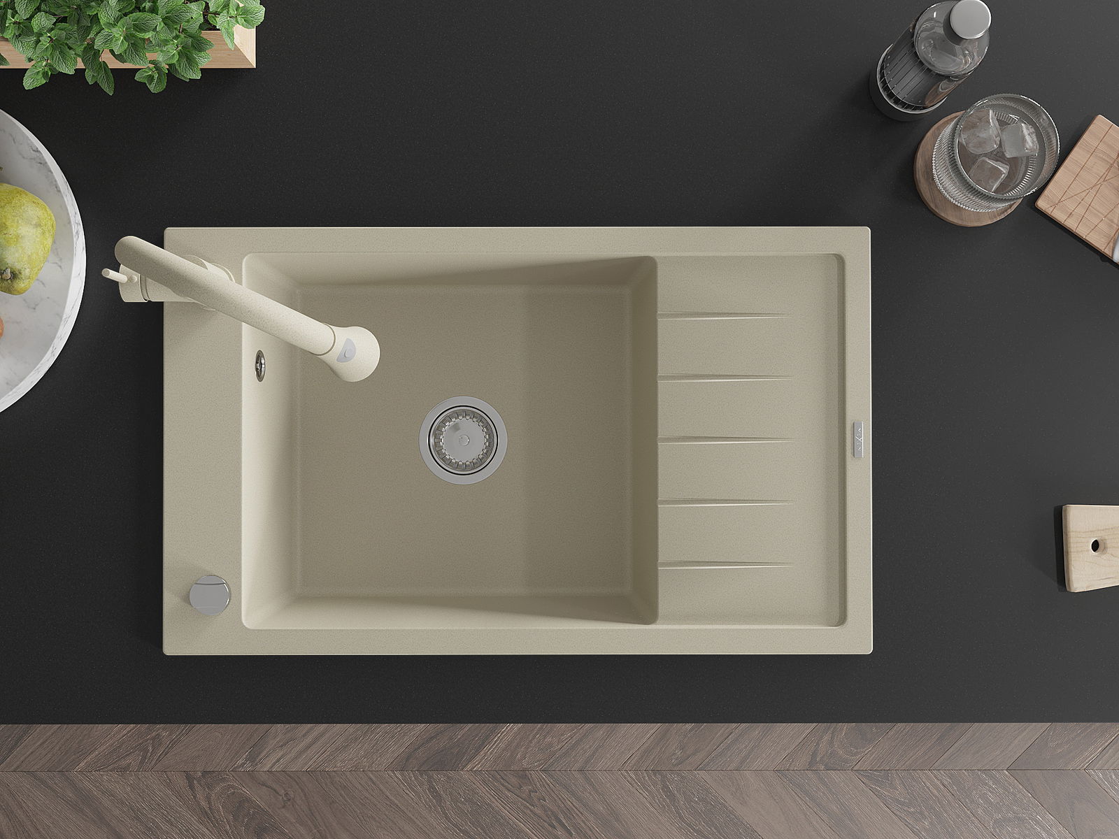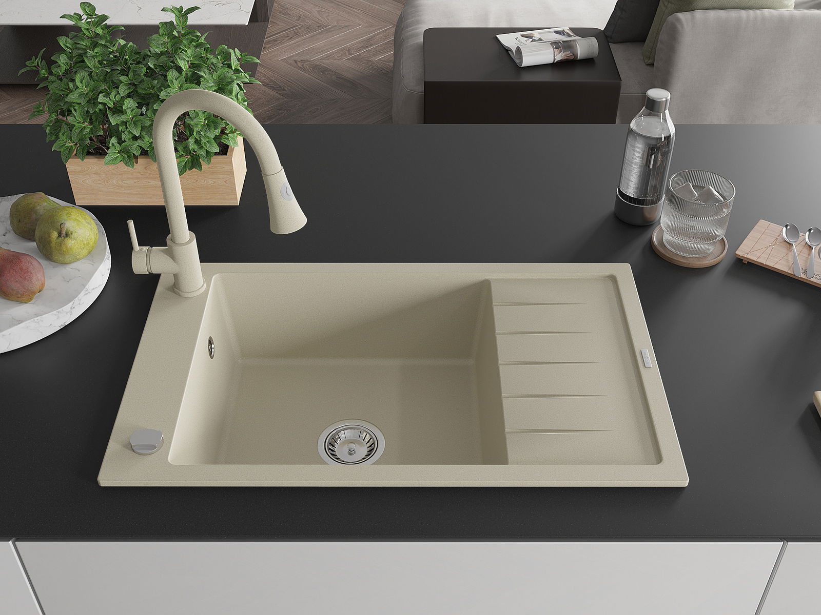 Mexen Elias lavello in granito a 1 vasca con scolapiatti e rubinetto da cucina Elia, beige - 6511-69-670101-69