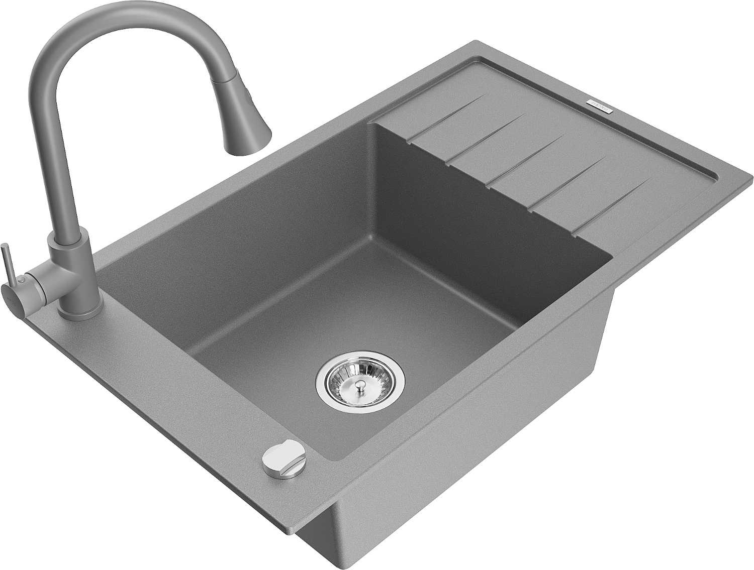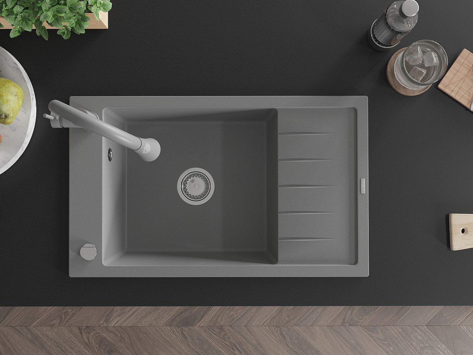 Mexen Elias lavello in granito a 1 vasca con scolapiatti e rubinetto da cucina Elia, grigio - 6511-71-670101-71