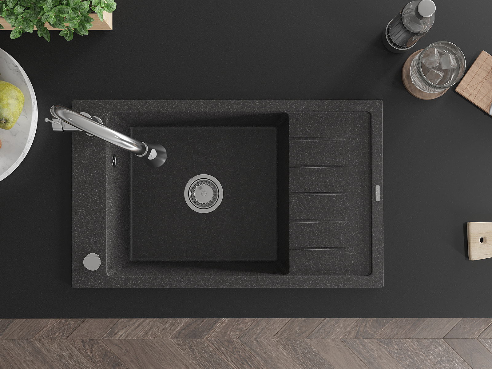 Il lavello è realizzato in granito di alta qualità. Rappresenta un complemento elegante e, soprattutto, pratico per ogni cucina, indipendentemente dal suo stile. L'alta qualità e la durata del granito garantiscono un utilizzo che dura per molti anni.