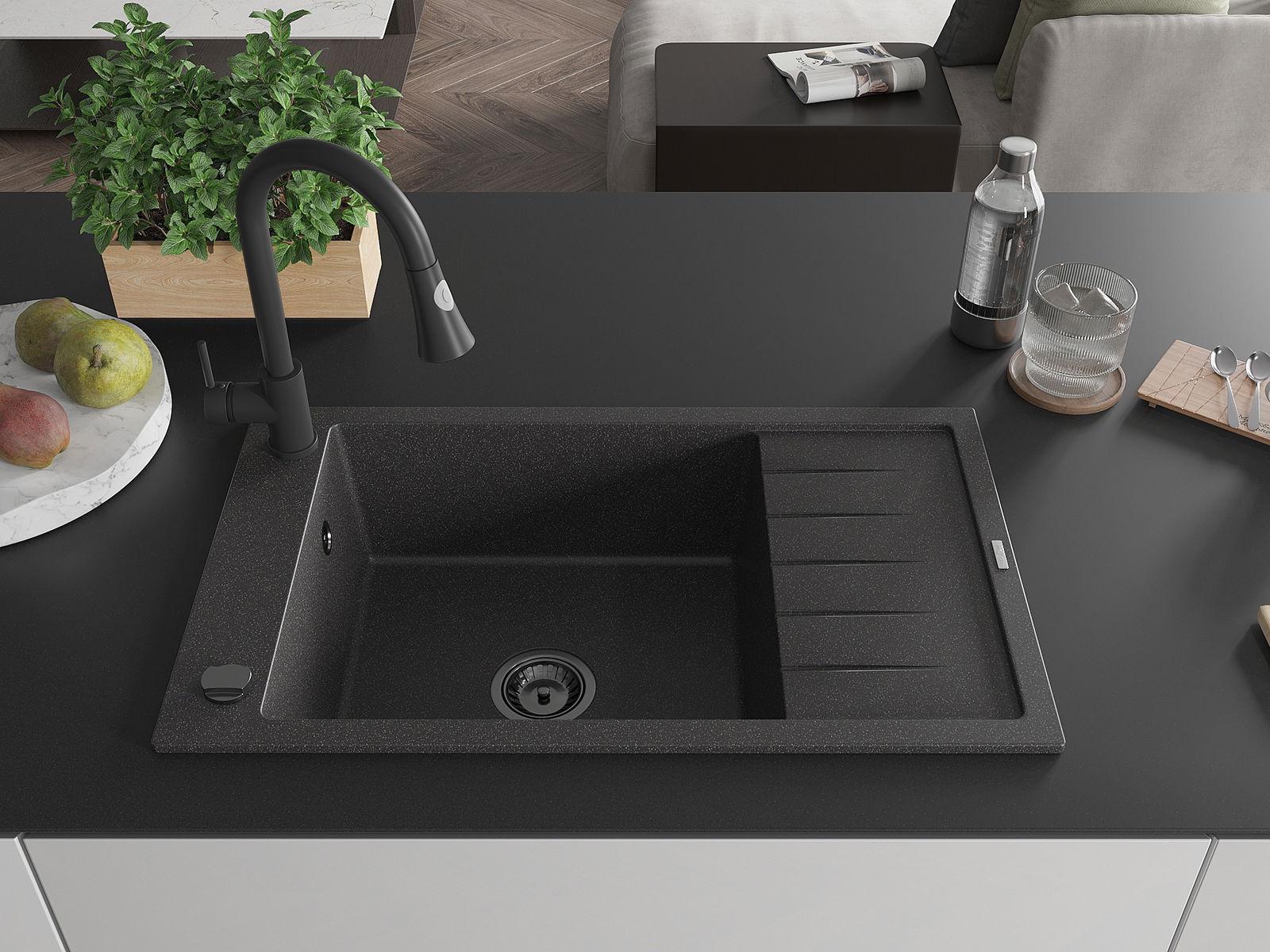 La scelta di un lavello con sgocciolatoio è una soluzione pratica che consente di riporre piatti, verdure e frutta lavati. Lo sgocciolatoio facilita la cucina quotidiana e aiuta a mantenere l'ordine in cucina.
