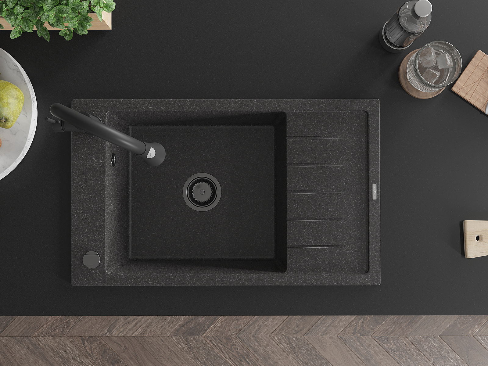 Il lavello è realizzato in granito di alta qualità. Rappresenta un complemento elegante e, soprattutto, pratico per ogni cucina, indipendentemente dal suo stile. L'alta qualità e la durata del granito garantiscono un utilizzo che dura per molti anni.