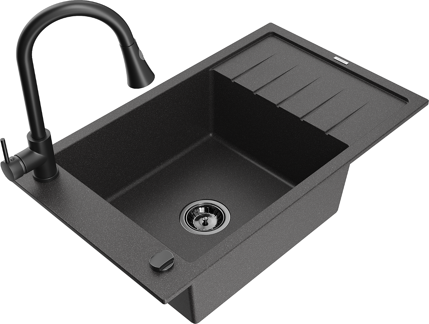 Mexen Elias lavello in granito a 1 vasca con sgocciolatoio e rubinetto da cucina Elia, nero maculato - 6511-76-670101-70-B
