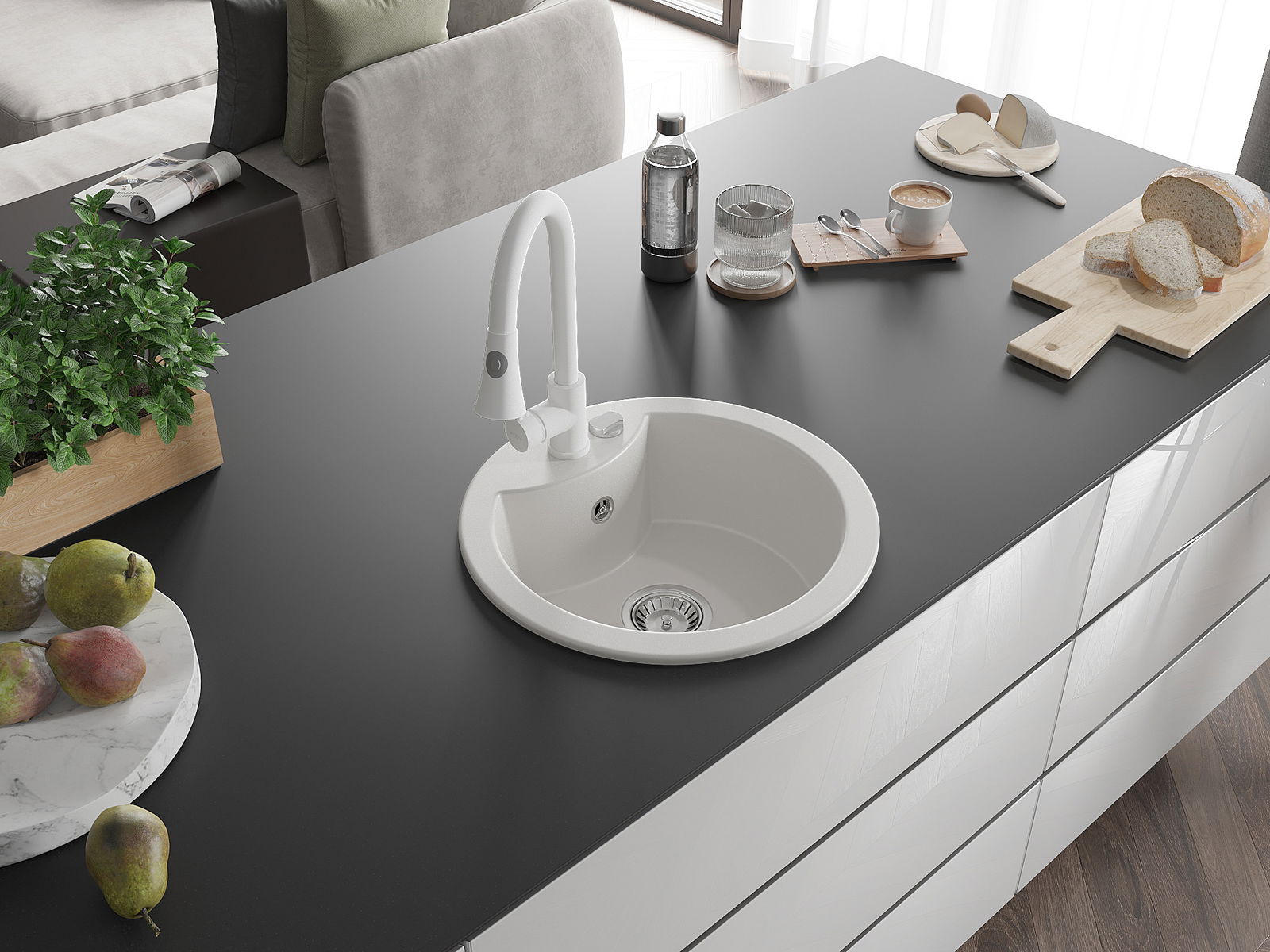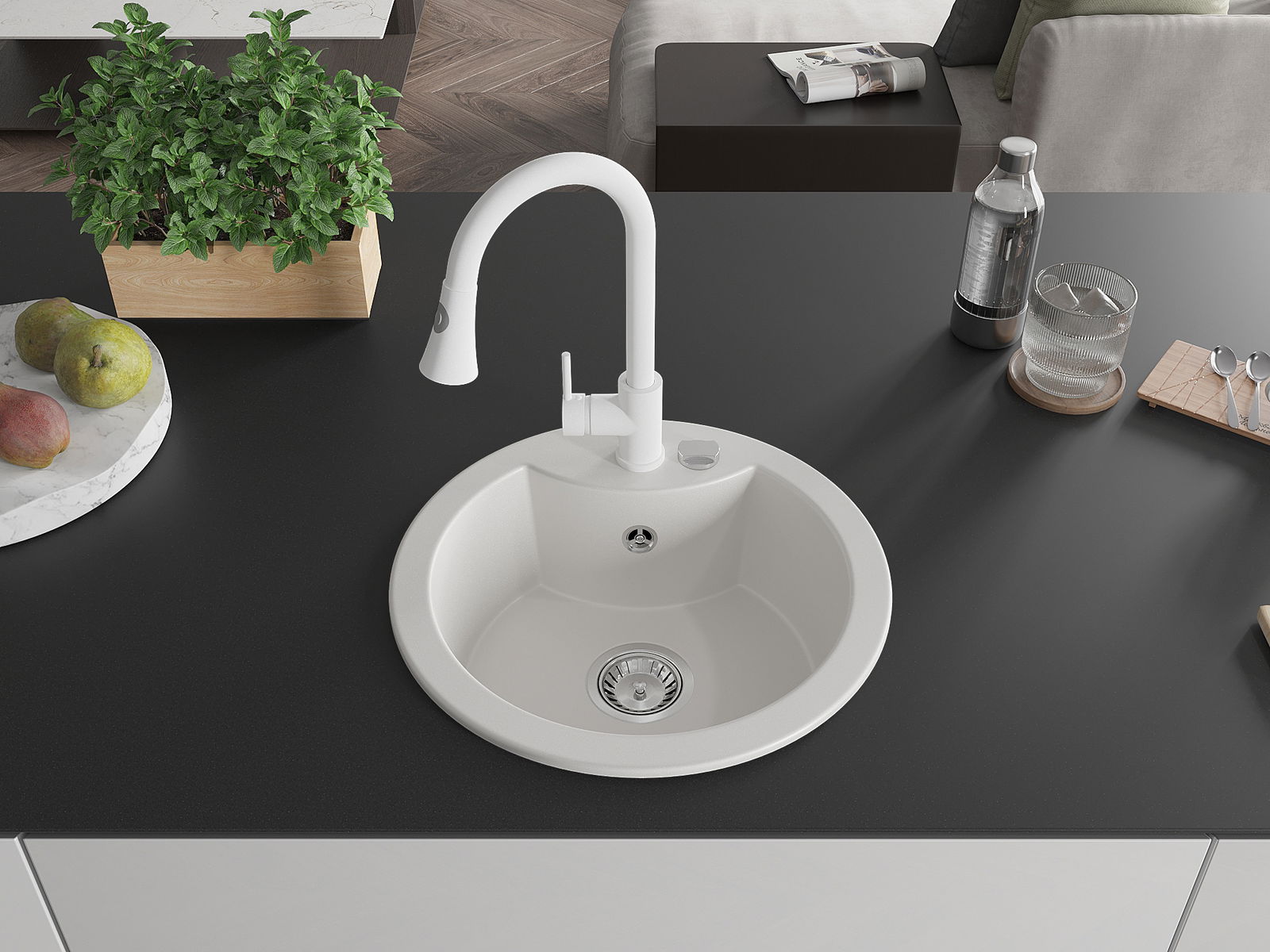 Il lavello è realizzato in granito di alta qualità. Rappresenta un complemento elegante e, soprattutto, pratico per ogni cucina, indipendentemente dal suo stile. L'alta qualità e la durata del granito garantiscono un utilizzo che dura per molti anni.
