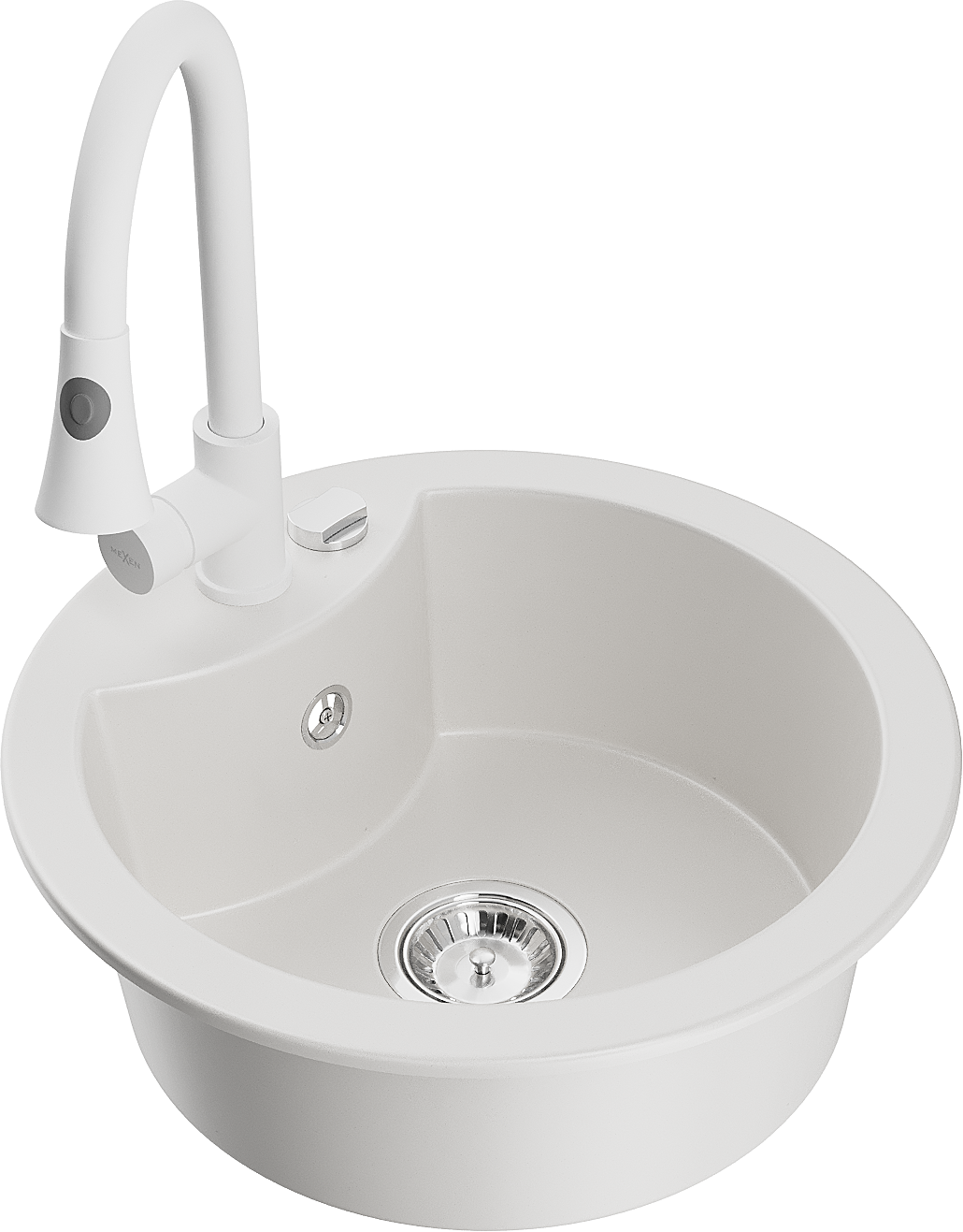 Mexen Diego lavello in granito a 1 vasca con rubinetto da cucina Elia, bianco - 6512-20-670101-20