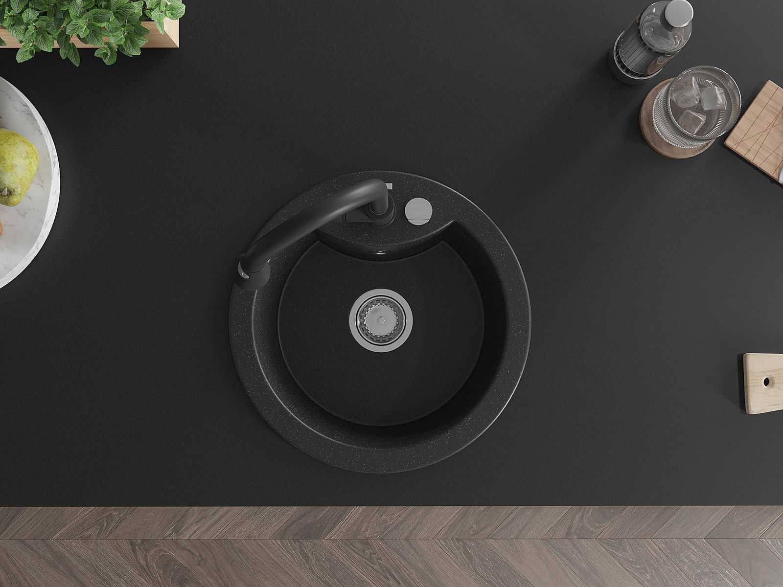 Il lavello è realizzato in granito di alta qualità. Rappresenta un complemento elegante e, soprattutto, pratico per ogni cucina, indipendentemente dal suo stile. L'alta qualità e la durata del granito garantiscono un utilizzo che dura per molti anni.