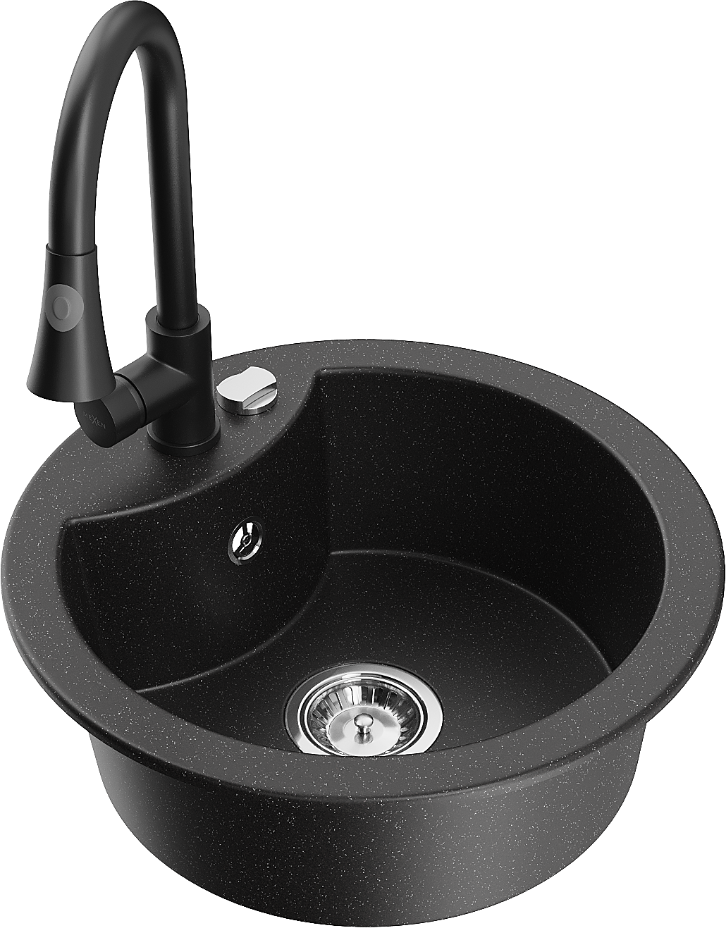 Mexen Diego lavello in granito a 1 vasca con rubinetto da cucina Elia, nero/metallo argentato - 6512-73-670101-70
