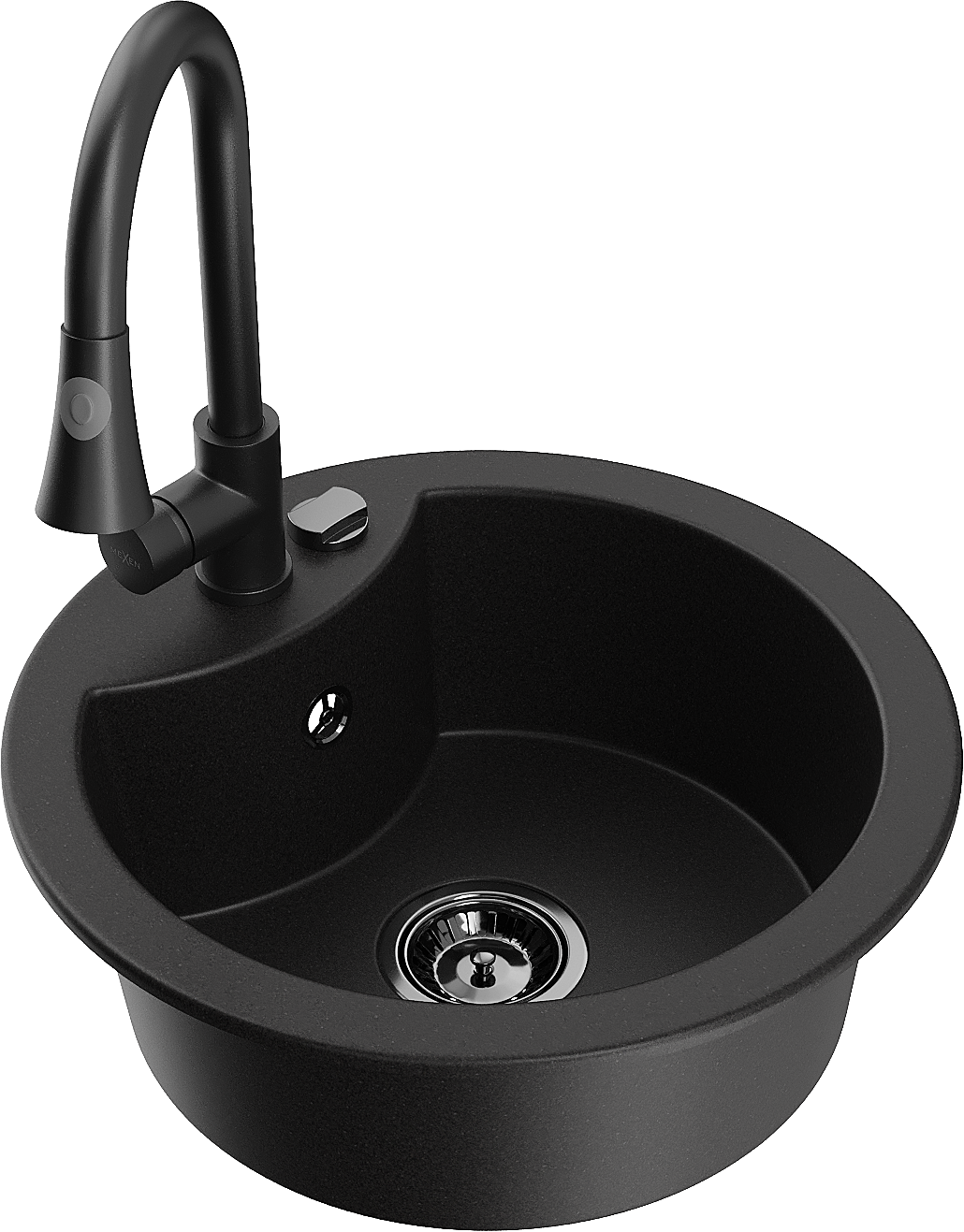 Mexen Diego lavello in granito a 1 vasca con rubinetto da cucina Elia, nero - 6512-77-670101-70-B