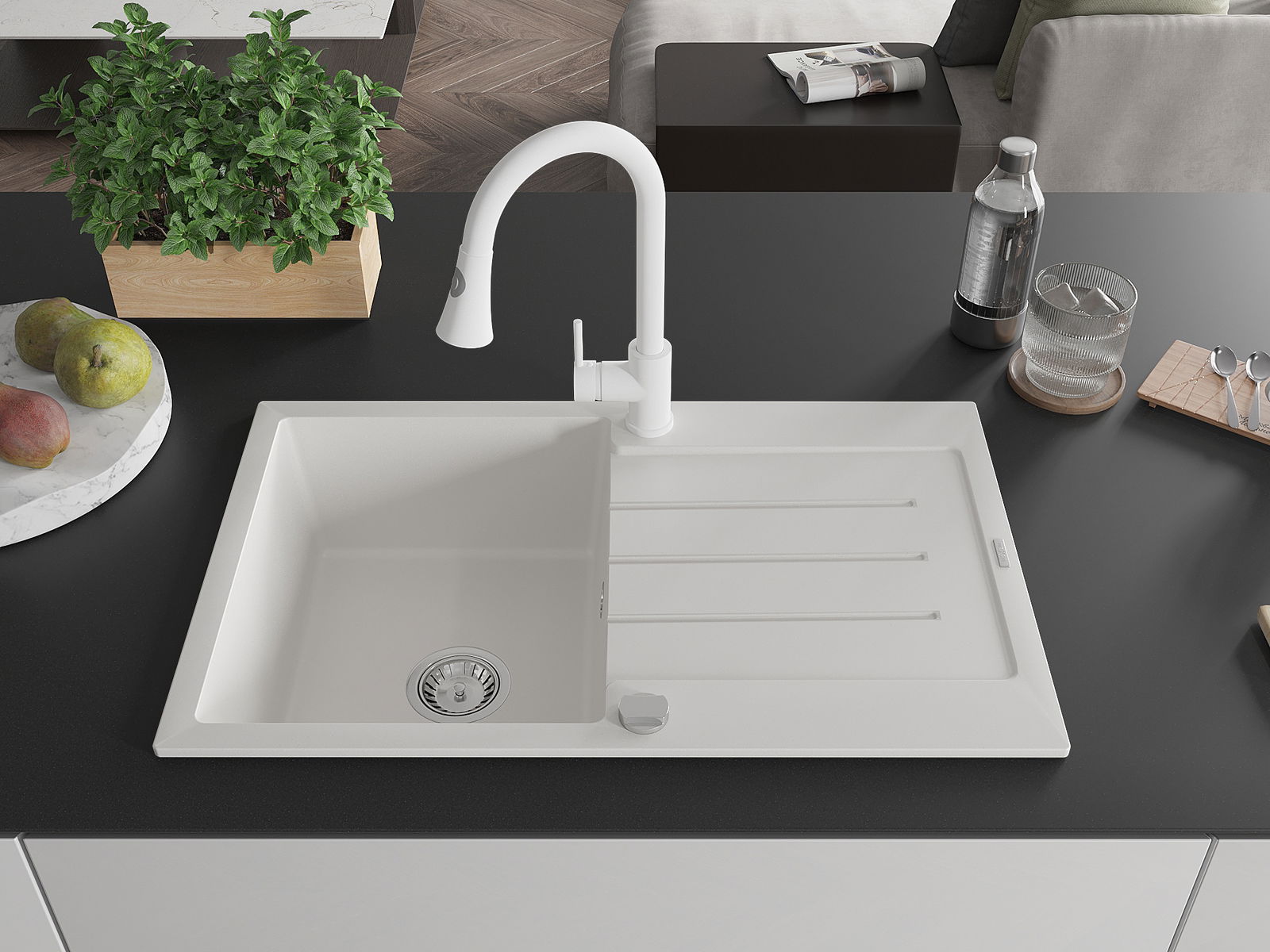 La scelta di un lavello con sgocciolatoio è una soluzione pratica che consente di riporre piatti, verdure e frutta lavati. Lo sgocciolatoio facilita la cucina quotidiana e aiuta a mantenere l'ordine in cucina.