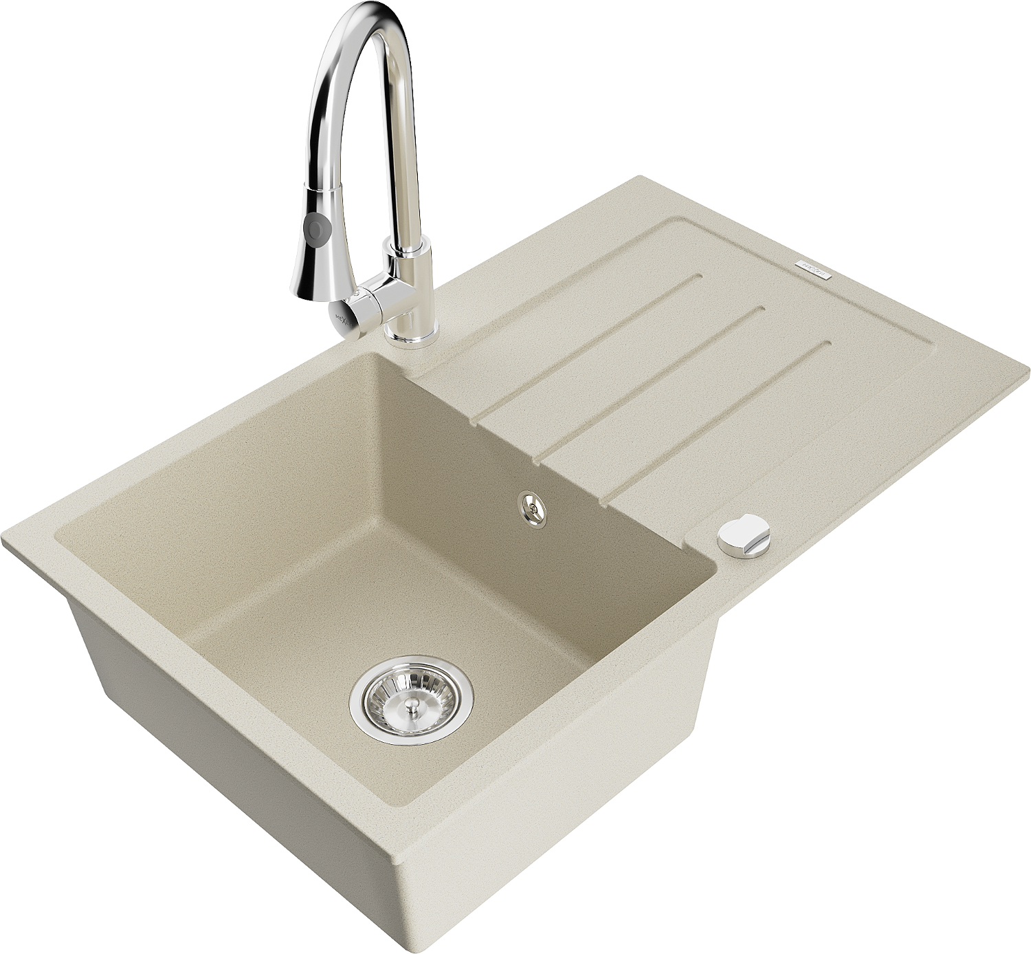 Mexen Bruno lavello in granito a 1 vasca con sgocciolatoio e rubinetto da cucina Elia, beige - 6513-69-670101-00