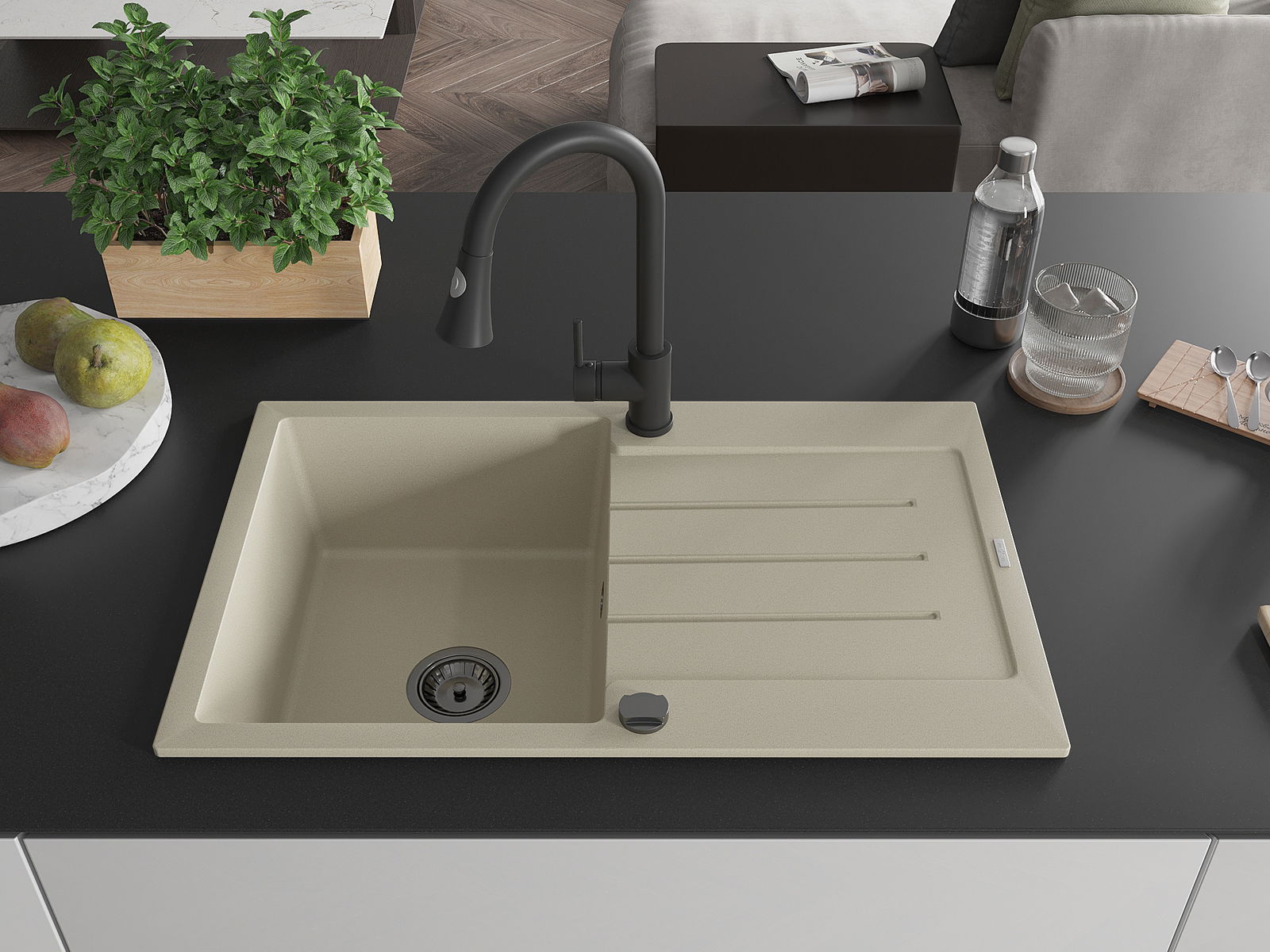 Il lavello è realizzato in granito di alta qualità. Rappresenta un complemento elegante e, soprattutto, pratico per ogni cucina, indipendentemente dal suo stile. L'alta qualità e la durata del granito garantiscono un utilizzo che dura per molti anni.