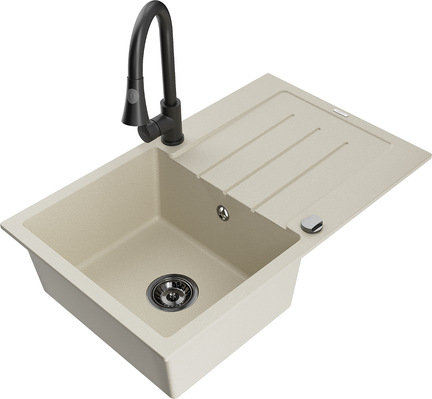 Mexen Bruno lavello da cucina in granito 1 vasca con gocciolatoio e rubinetto da cucina Elia, beige - 6513-69-670101-70