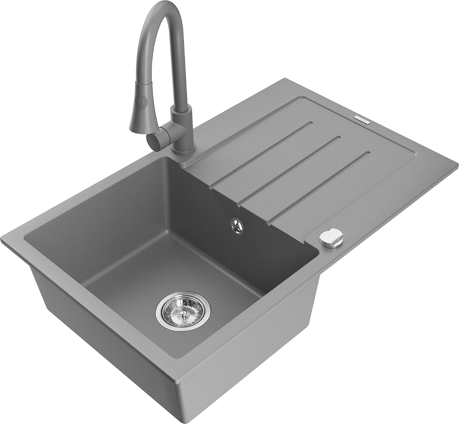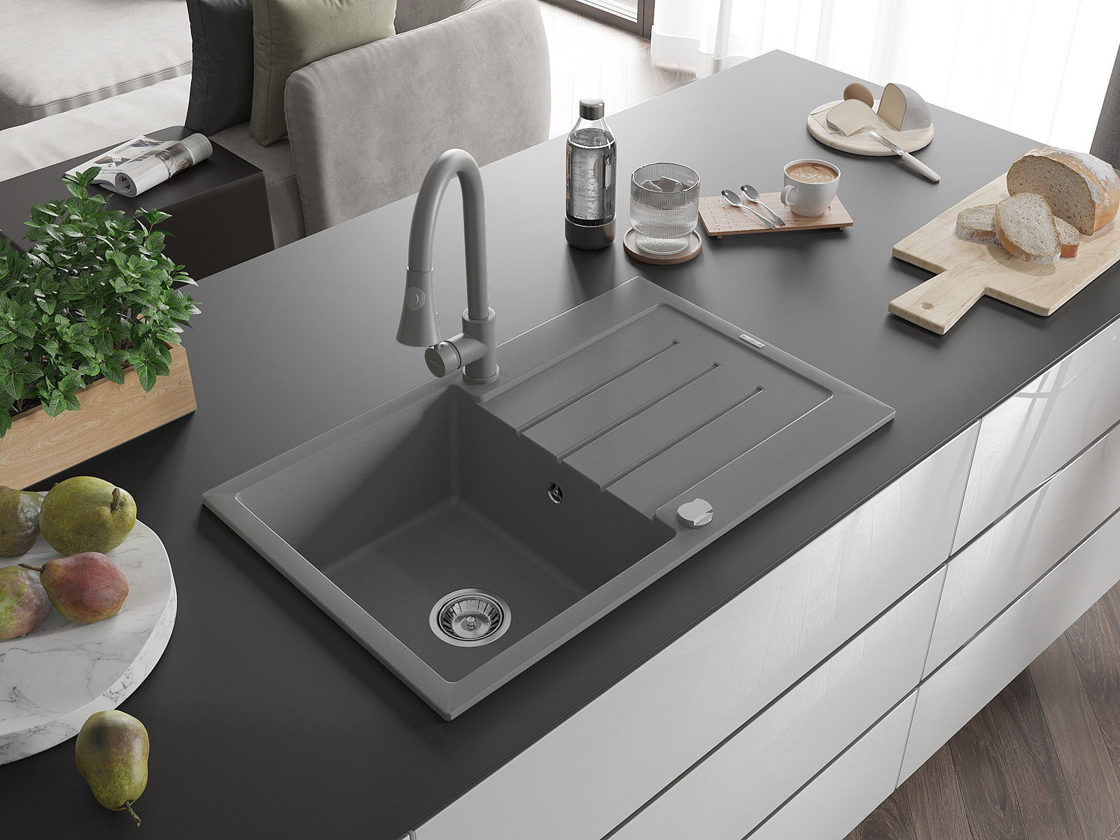 Mexen Bruno lavello in granito ad 1 vasca con sgocciolatoio e miscelatore cucina Elia, grigio - 6513-71-670101-71
