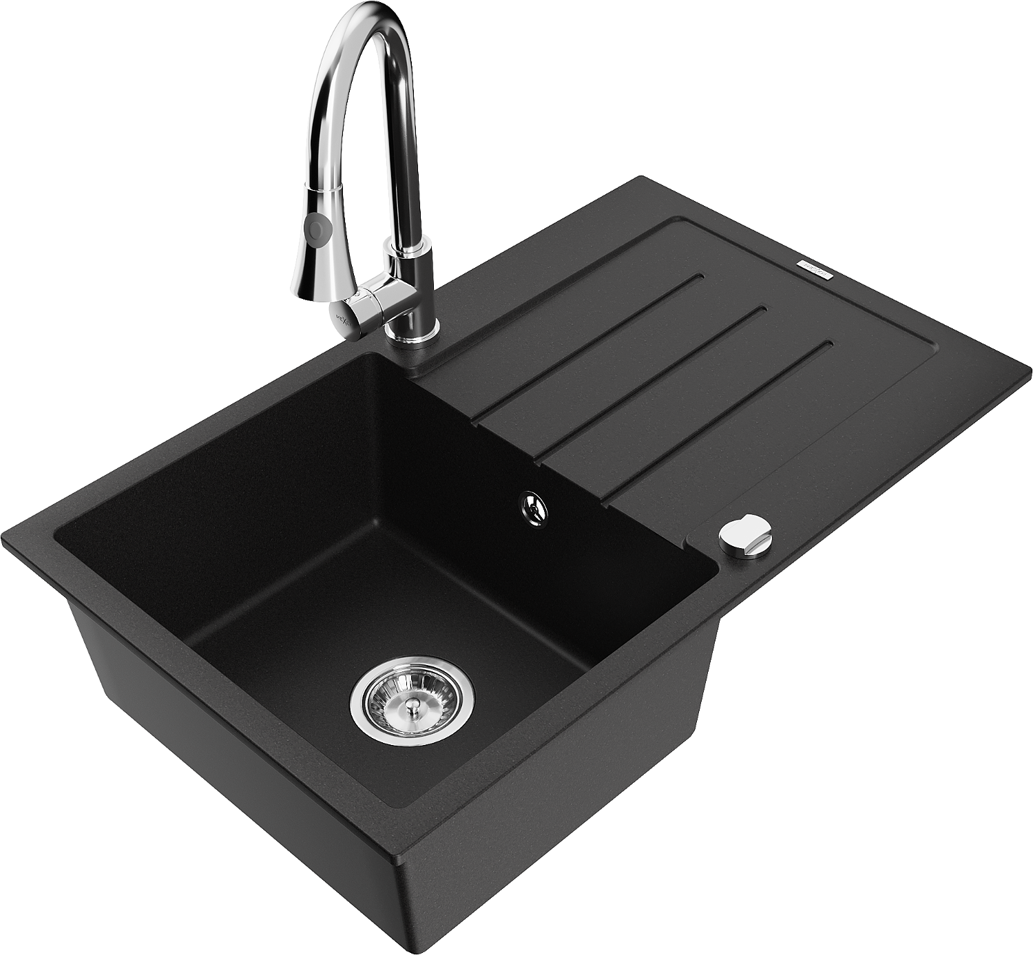 Mexen Bruno lavello in granito a 1 vasca con sgocciolatoio e miscelatore da cucina Elia, nero - 6513-77-670101-00
