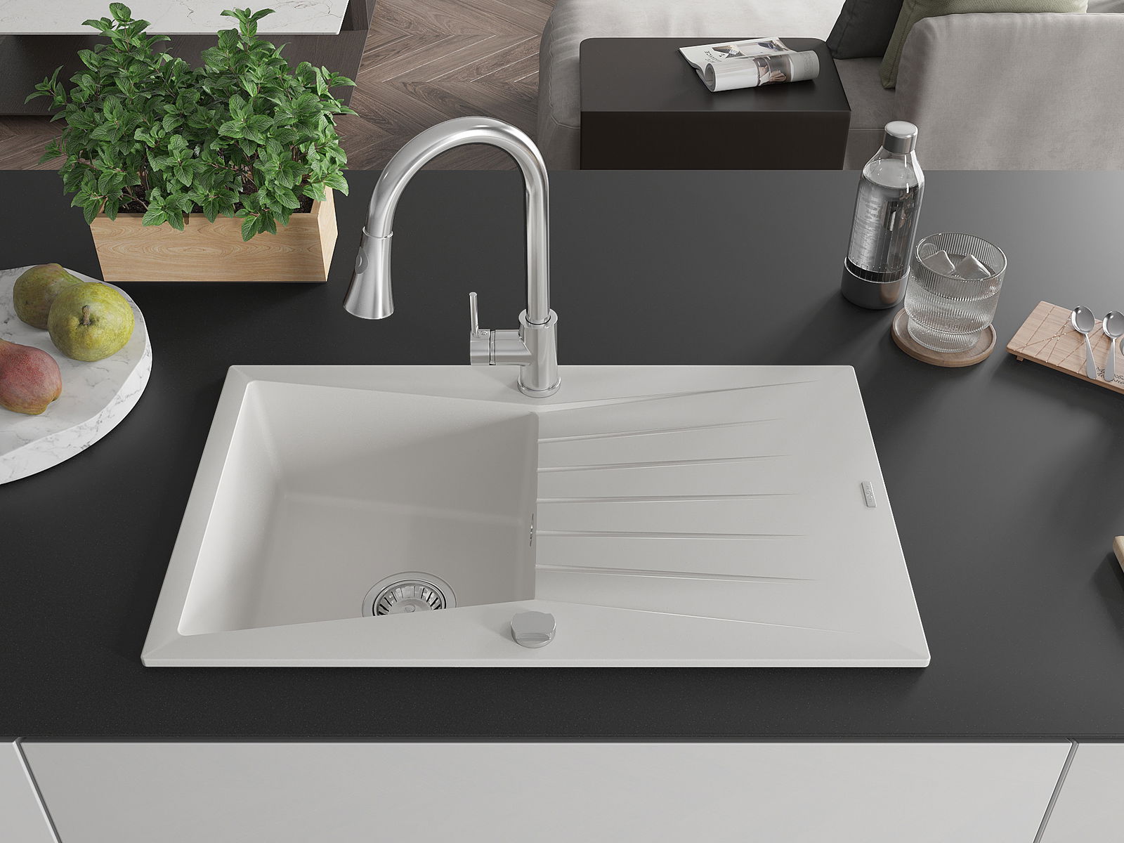 La scelta di un lavello con sgocciolatoio è una soluzione pratica che consente di riporre piatti, verdure e frutta lavati. Lo sgocciolatoio facilita la cucina quotidiana e aiuta a mantenere l'ordine in cucina.