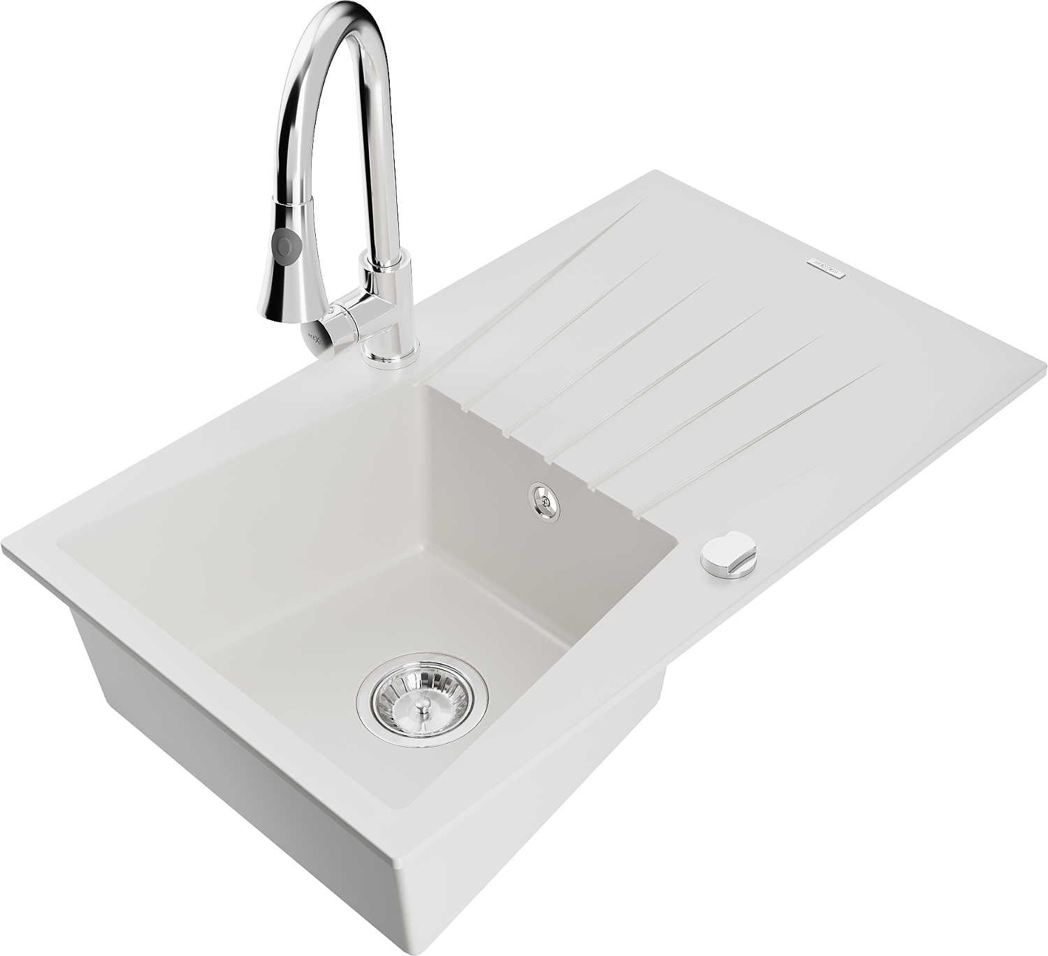 Mexen Cesar lavello da cucina in granito 1-vasca con sgocciolatoio e rubinetto Elia, bianco - 6514-20-670101-00