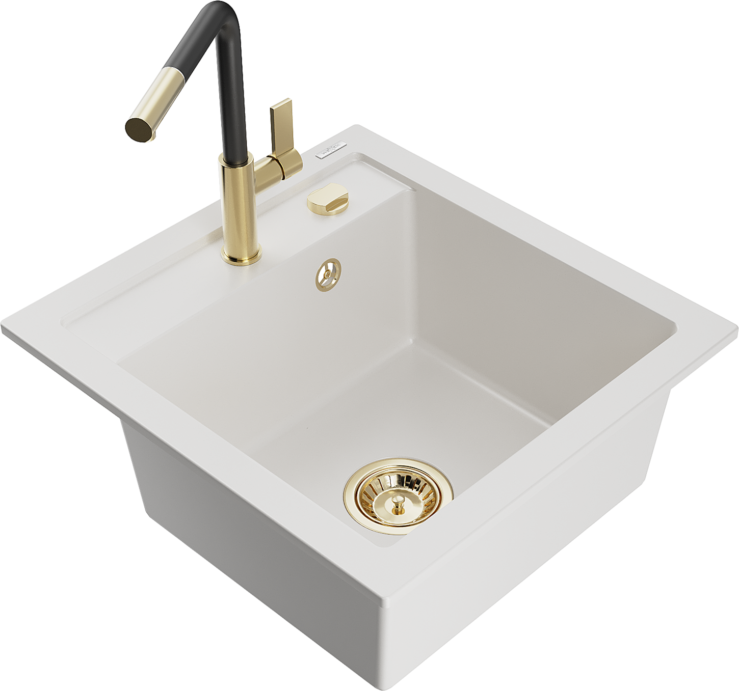 Mexen Vito lavello in granito 1-vasca con miscelatore cucina Flora, bianco - 6503-20-670401-57-G