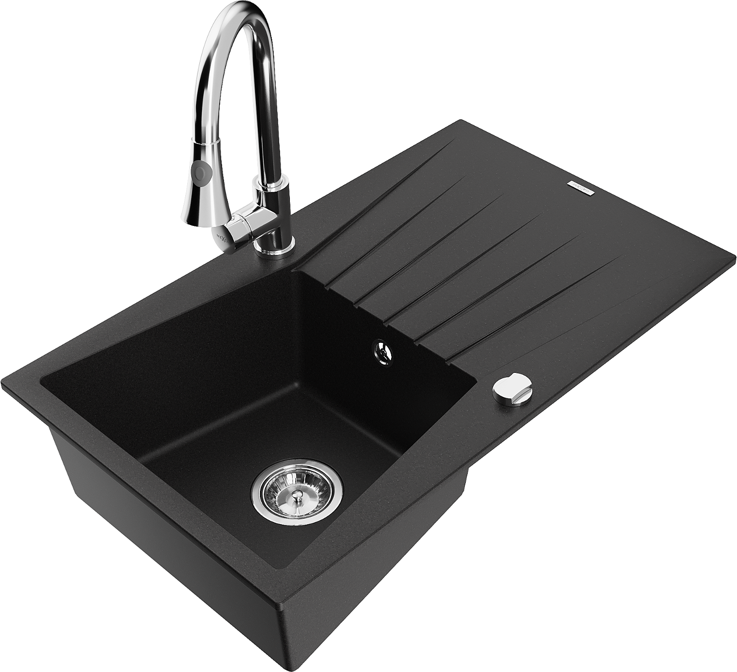 Mexen Cesar lavello in granito a 1 vasca con scolapiatti e miscelatore da cucina Elia, nero - 6514-77-670101-00