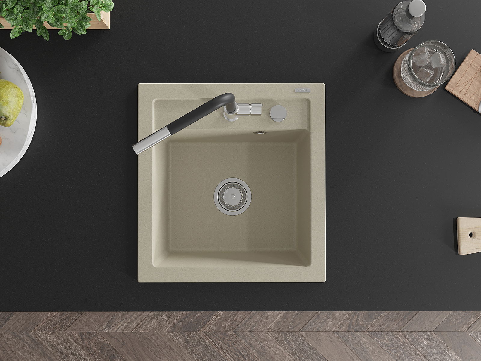 Mexen Vito lavello in granito a una vasca con miscelatore da cucina Flora, beige - 6503-69-670401-07