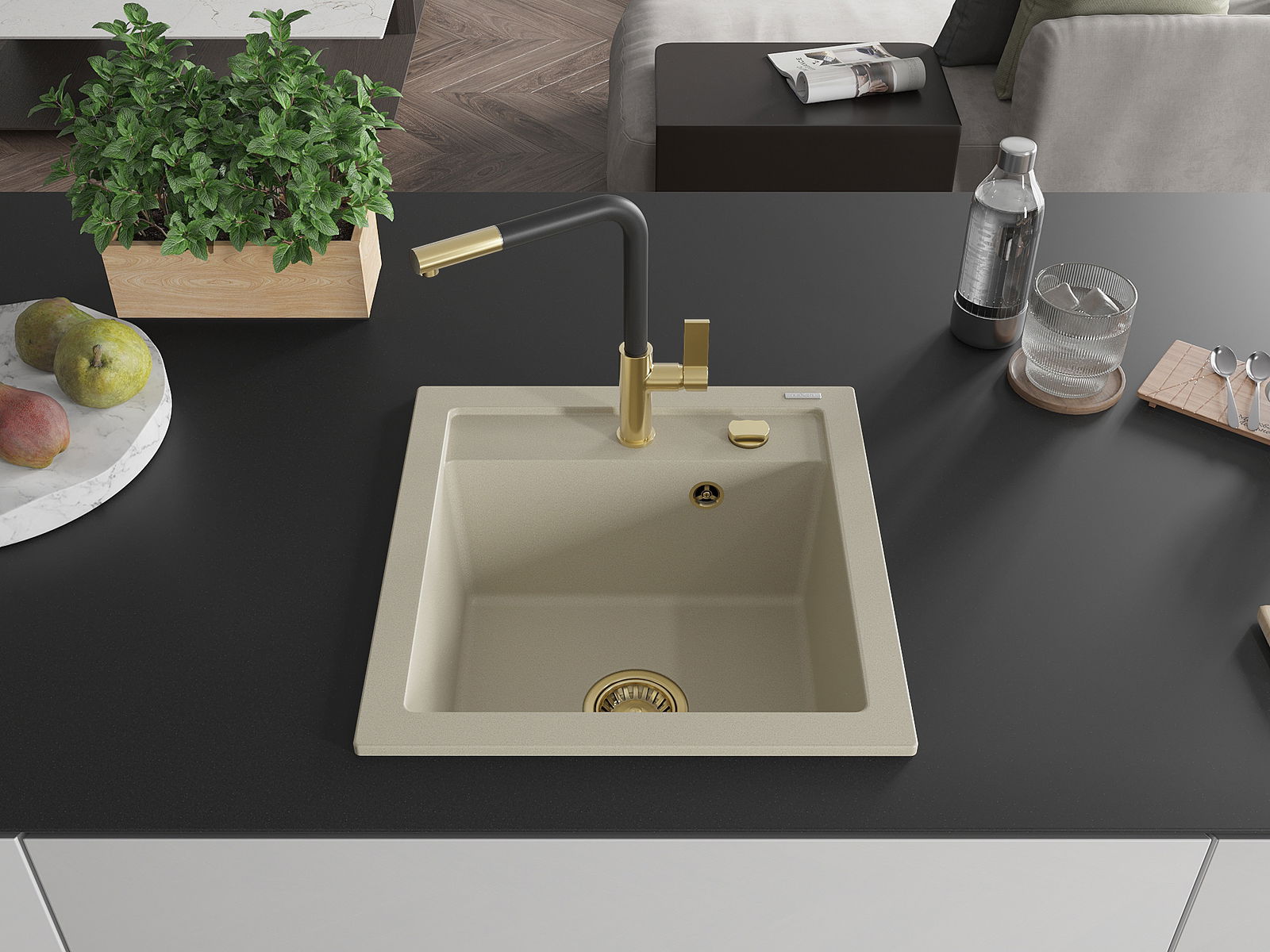 Il lavello è realizzato in granito di alta qualità. Rappresenta un complemento elegante e, soprattutto, pratico per ogni cucina, indipendentemente dal suo stile. L'alta qualità e la durata del granito garantiscono un utilizzo che dura per molti anni.