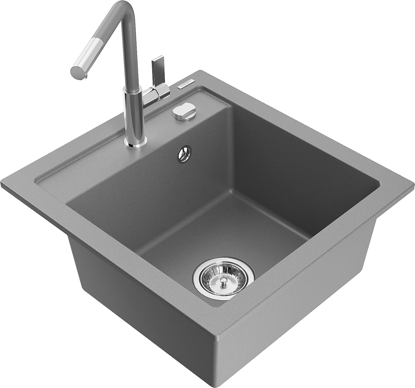 Mexen Vito lavello in granito a 1 vasca con miscelatore da cucina Flora, grigio - 6503-71-670401-06