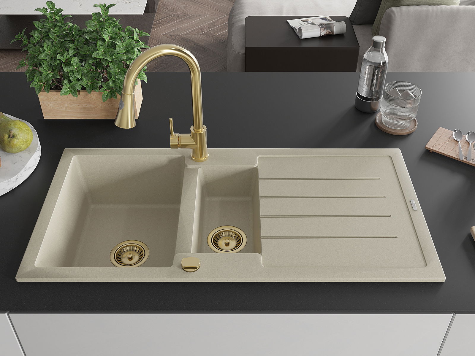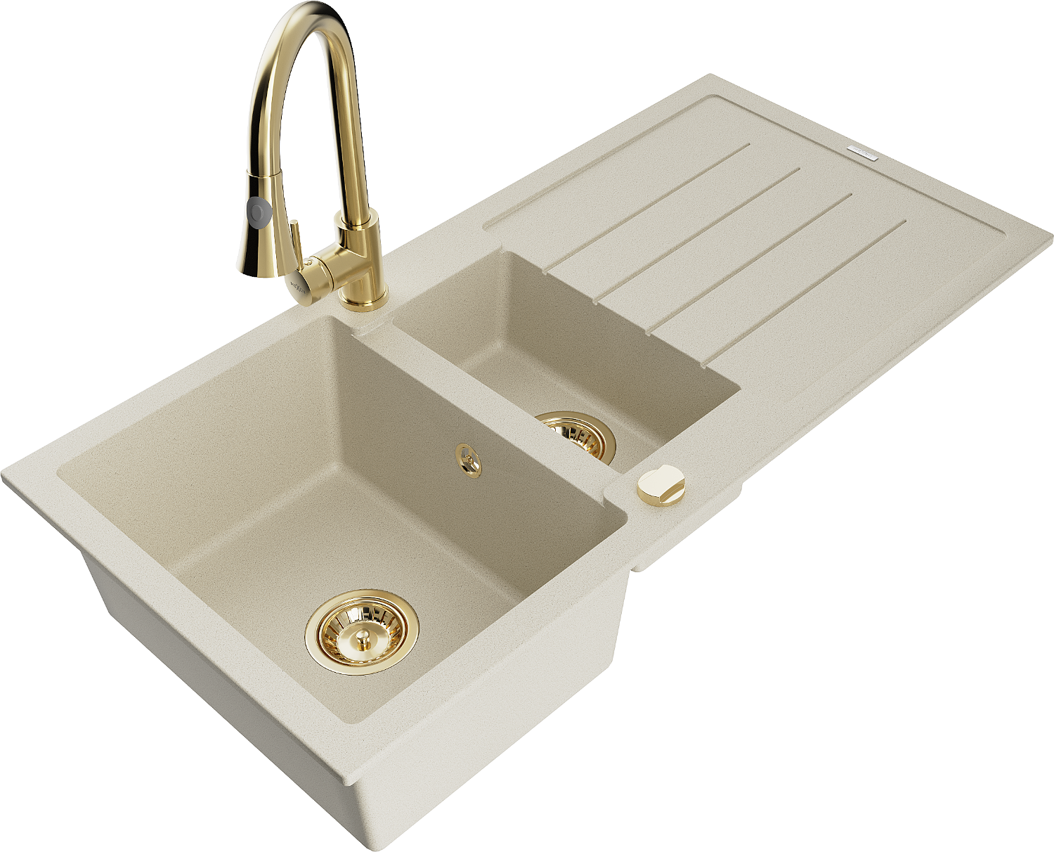 Mexen Andres lavello in granito 1,5 vasche con scolapiatti e miscelatore da cucina Elia, beige - 6515-69-670101-50