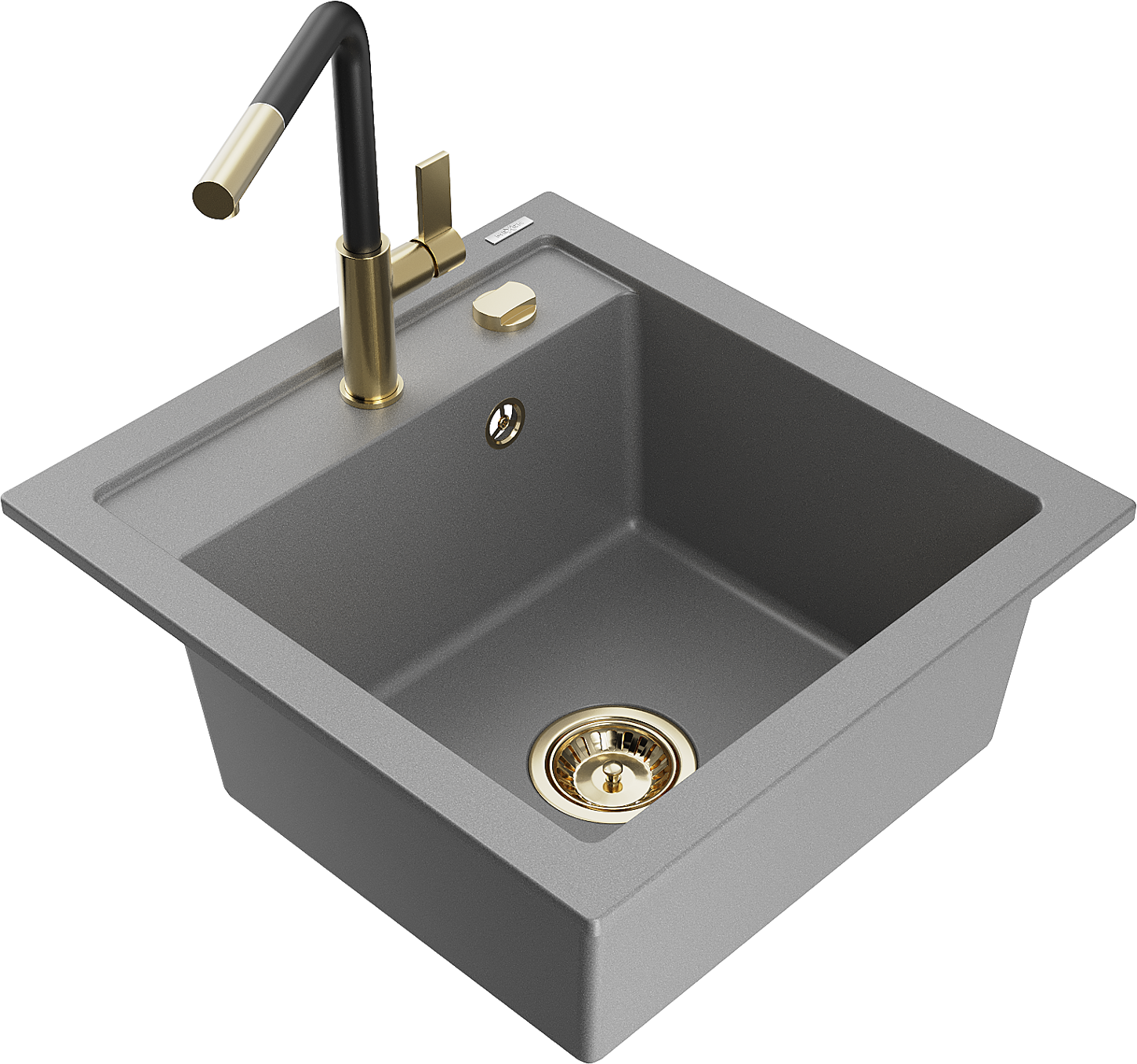 Mexen Vito lavello in granito a 1 vasca con rubinetto da cucina Flora, grigio - 6503-71-670401-57-G