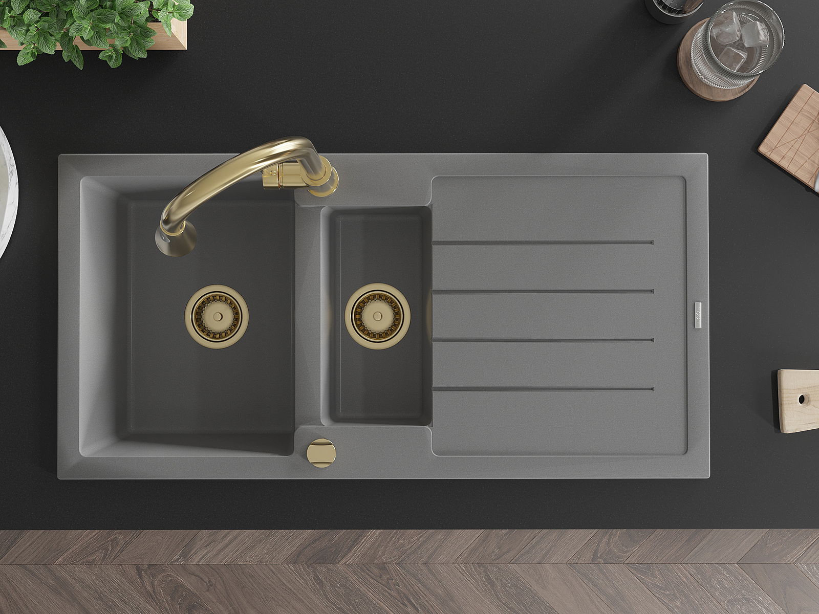 Mexen Andres lavello in granito a 1,5 vasca con scolapiatti e rubinetto da cucina Elia, grigio - 6515-71-670101-50