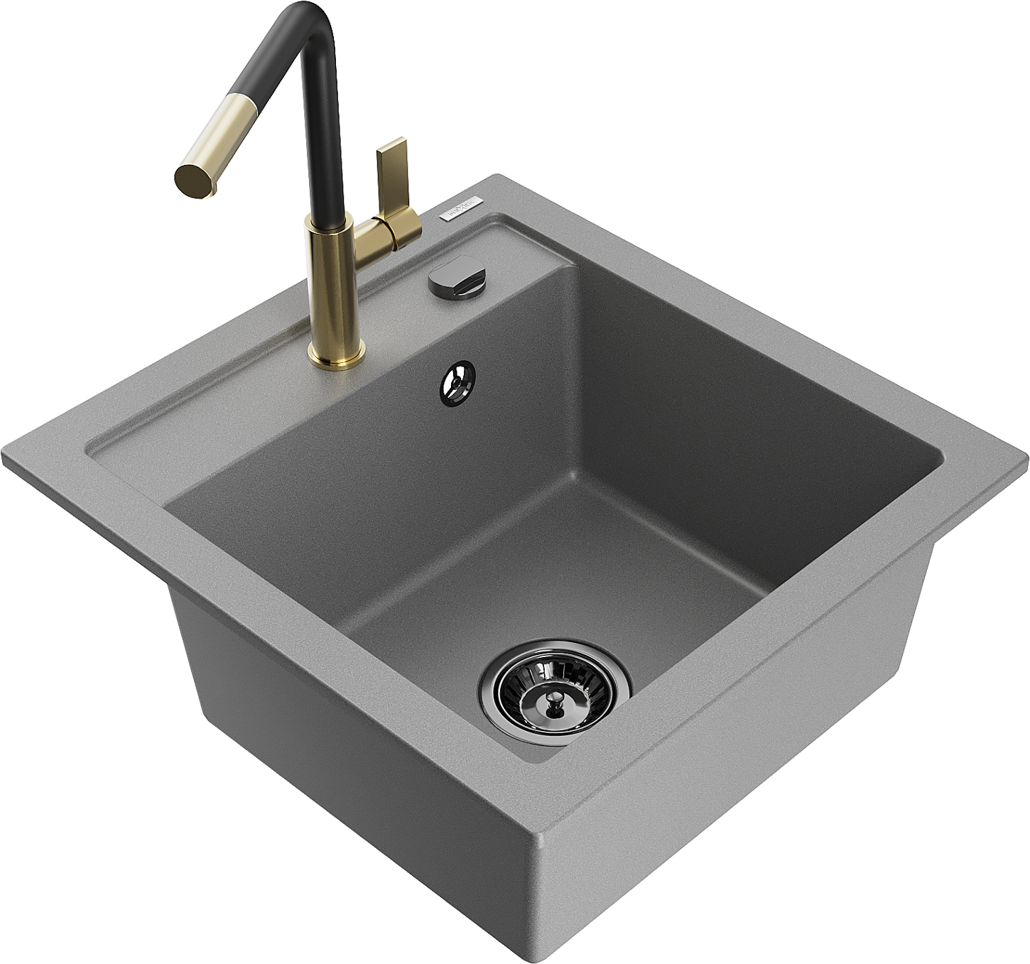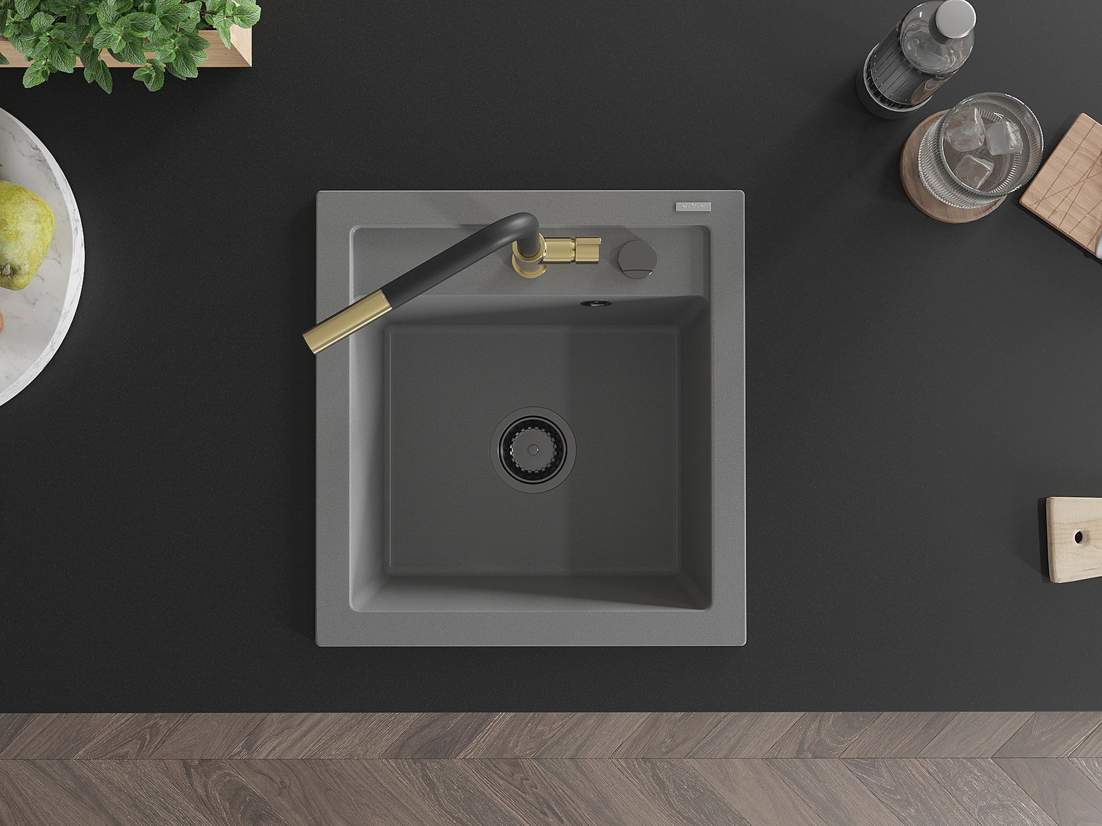 Mexen Vito lavello in granito a 1 vasca con miscelatore da cucina Flora, grigio - 6503-71-670401-57-B