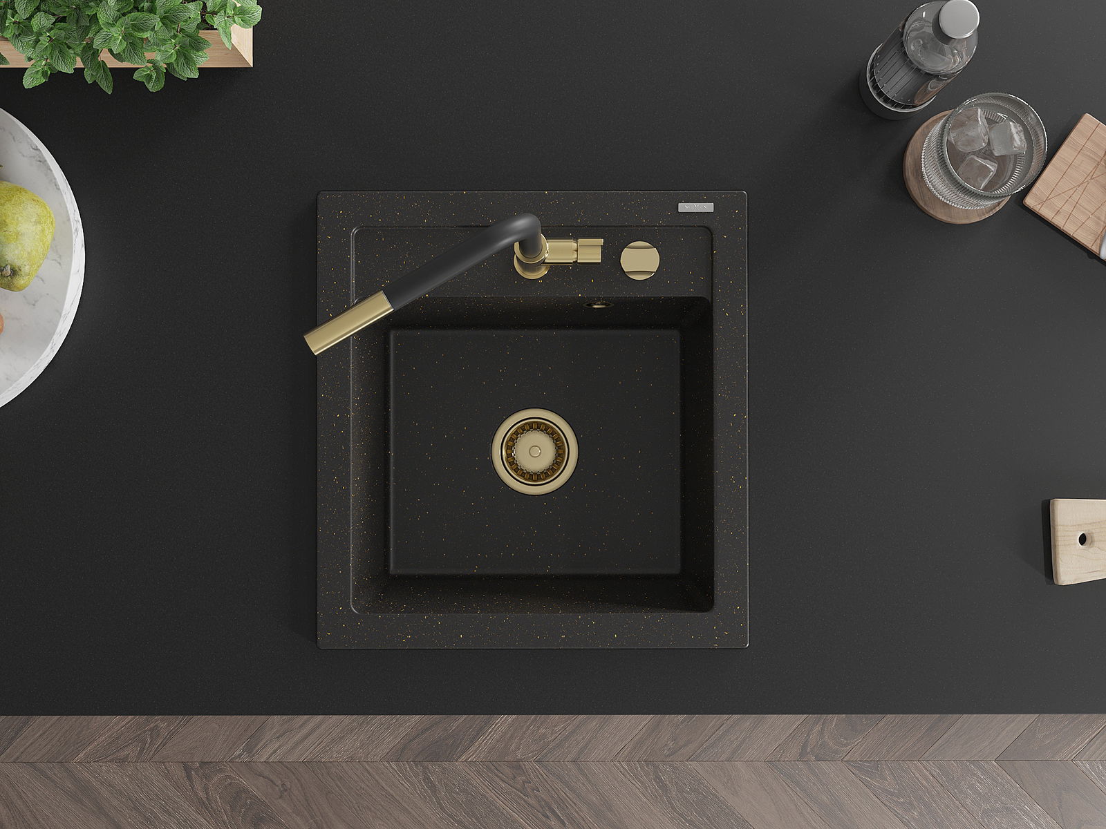 Mexen Vito lavello in granito 1-vasca con miscelatore da cucina Flora, nero/oro metallizzato - 6503-75-670401-57-G