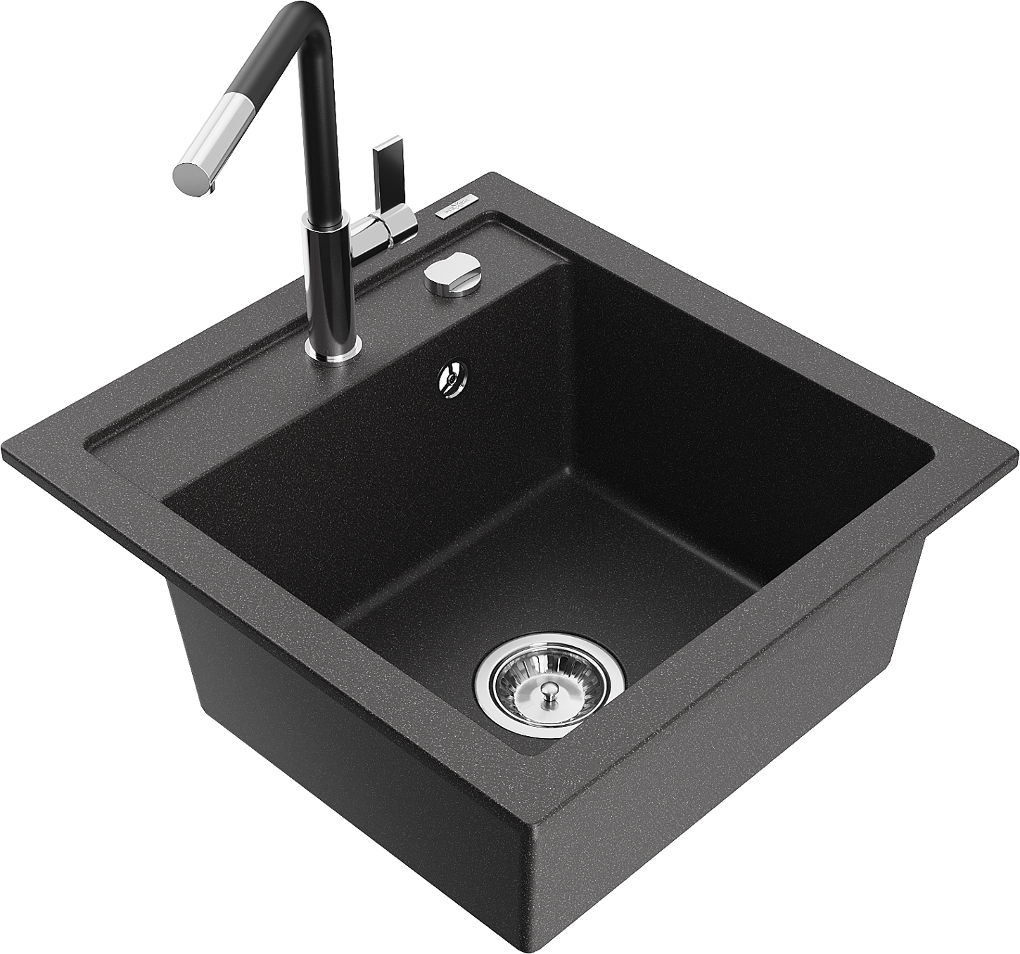 Mexen Vito lavello in granito a 1 vasca con miscelatore cucina Flora, nero maculato - 6503-76-670401-07