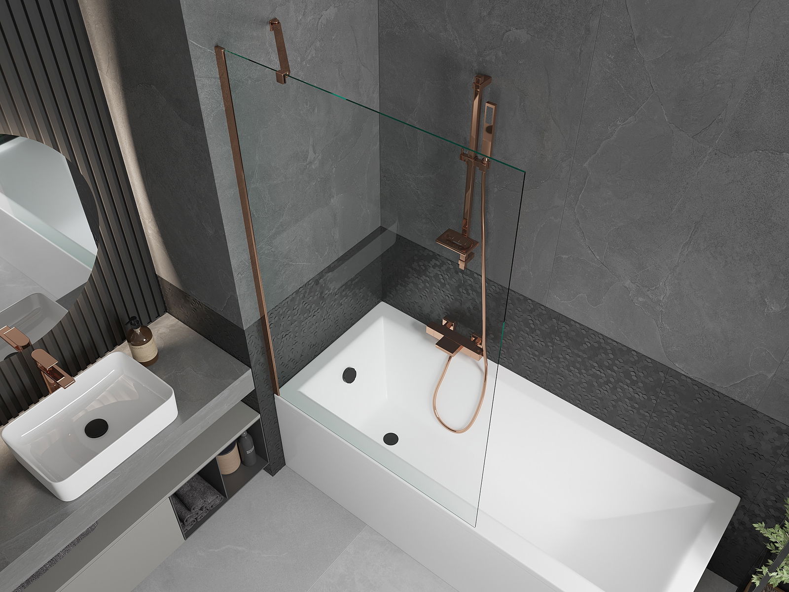Mexen Next paratia per vasca da bagno a 1 anta 90 x 150 cm, trasparente, oro rosa - 895-090-000-00-00-60