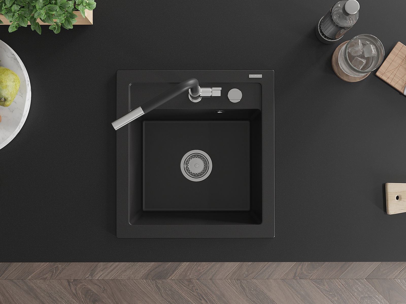 Mexen Vito lavello in granito a 1 vasca con rubinetto da cucina Flora, nero - 6503-77-670401-07
