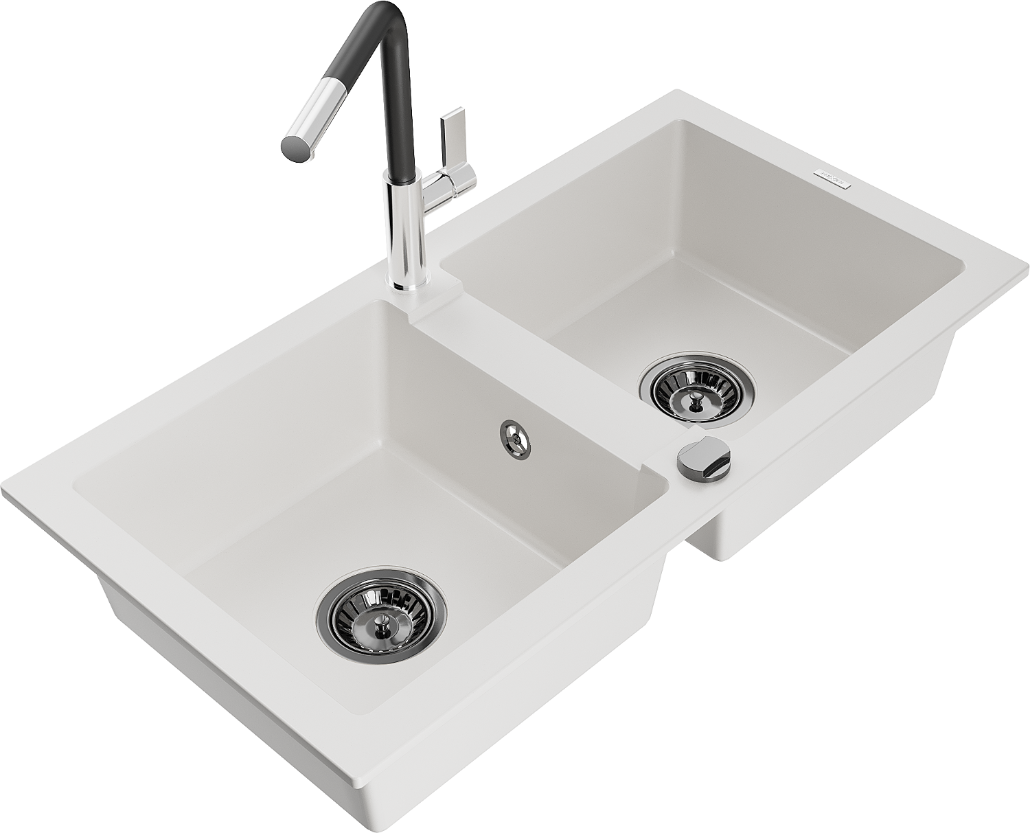 Mexen Mario lavello in granito a 2 vasche con miscelatore cucina Flora, bianco - 6504-20-670401-07-B