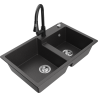 Mexen Tomas lavello in granito a 2 vasche con miscelatore Elia, nero/metallico argento - 6516-73-670101-70
