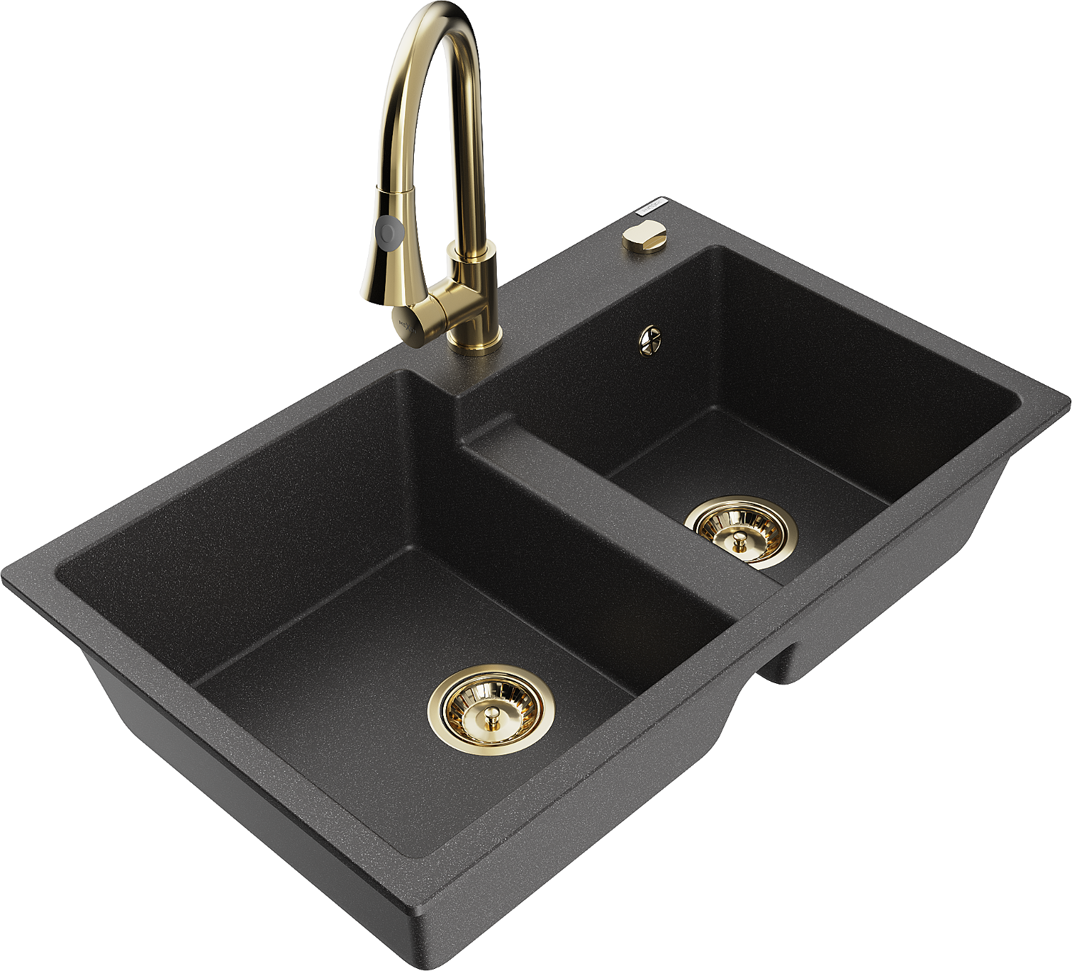 Mexen Tomas lavello da cucina in granito a 2 vasche con miscelatore Elia, nero maculato - 6516-76-670101-50