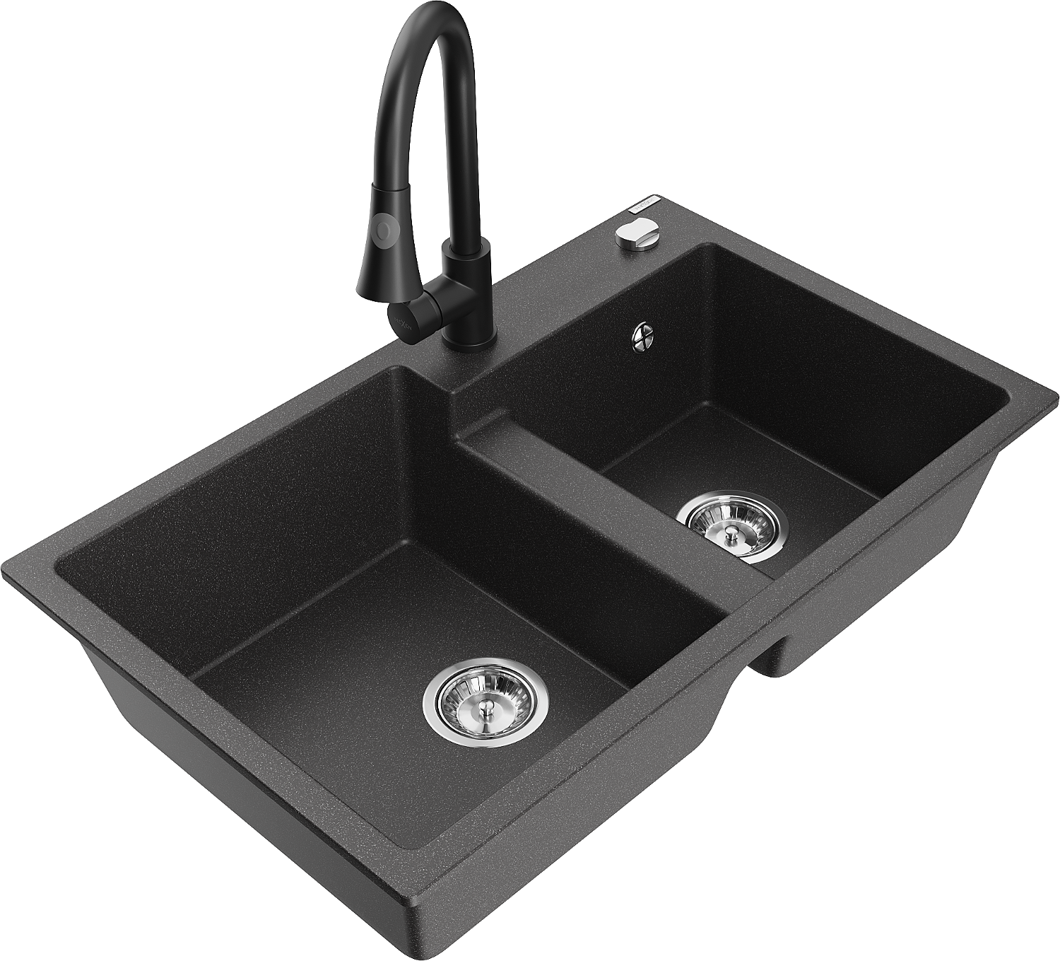 Mexen Tomas lavello in granito a 2 vasche con miscelatore da cucina Elia, nero maculato - 6516-76-670101-70