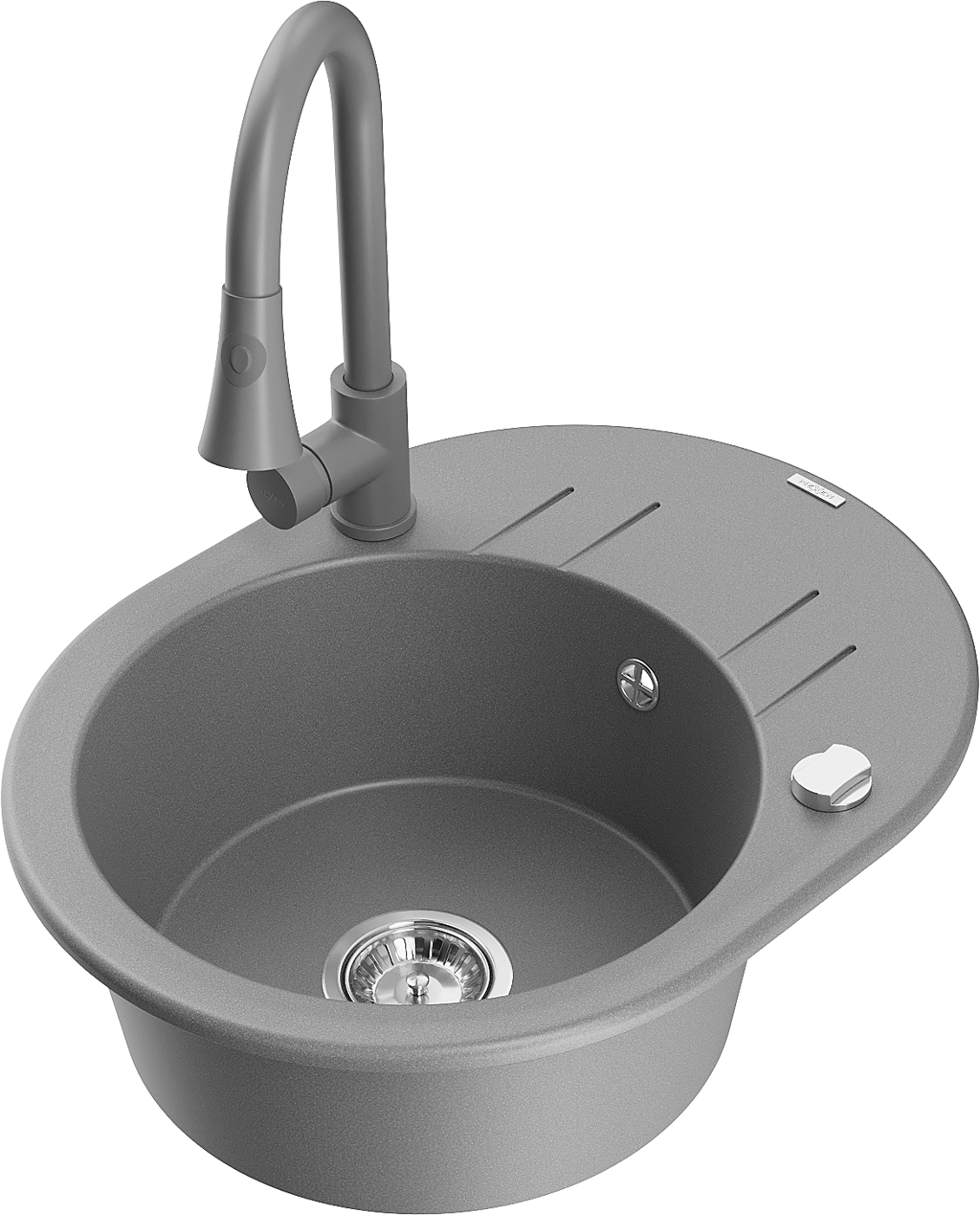 Mexen Kevin lavello in granito 1-vasca con gocciolatoio e rubinetto da cucina Elia, grigio - 6517-71-670101-71