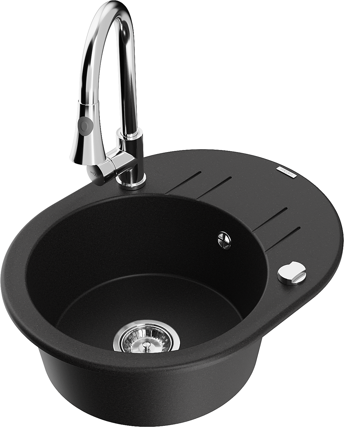 Mexen Kevin lavello in granito a 1 vasca con sgocciolatoio e rubinetto da cucina Elia, nero - 6517-77-670101-00