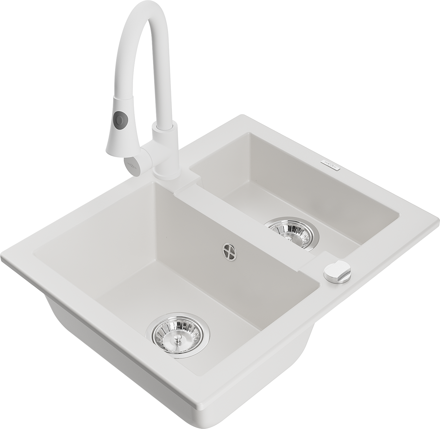 Mexen Carlos lavello in granito da 1,5 vasca con miscelatore cucina Elia, bianco - 6518-20-670101-20