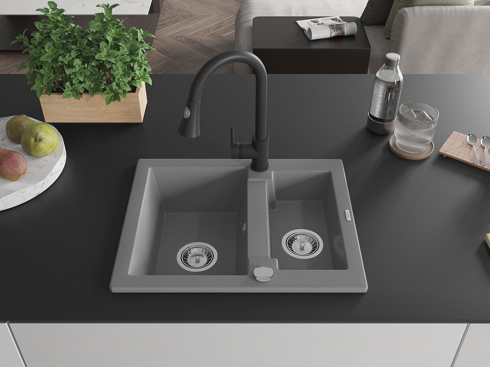 Il lavello è realizzato in granito di alta qualità. Rappresenta un complemento elegante e, soprattutto, pratico per ogni cucina, indipendentemente dal suo stile. L'alta qualità e la durata del granito garantiscono un utilizzo che dura per molti anni.